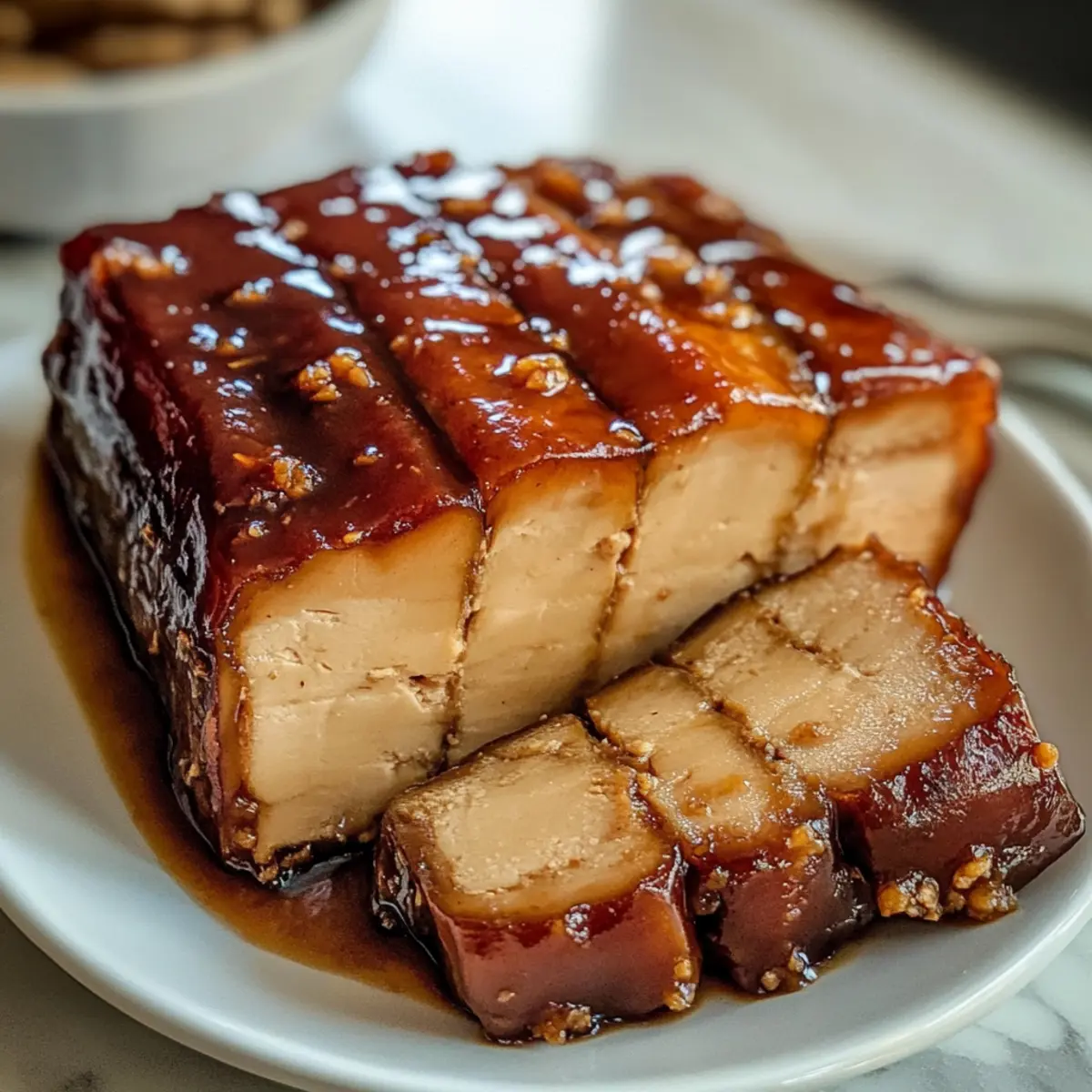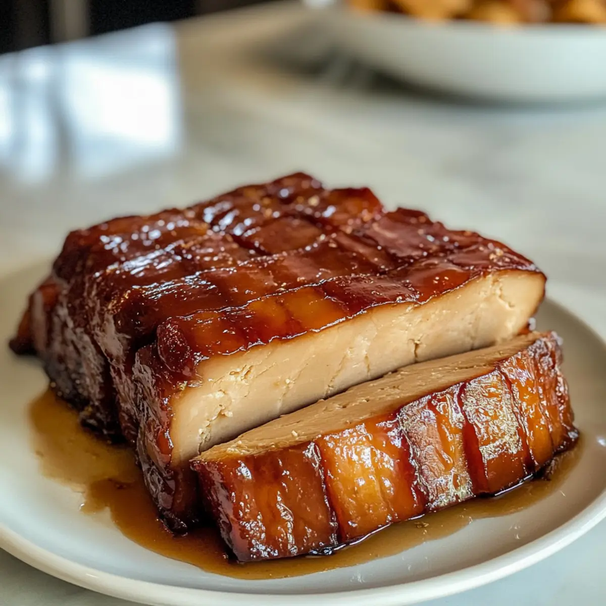 Perfekte Textur: Mit einem süßen, glänzenden Äußeren und einem saftigen, zarten Inneren wird dieser Tofu-Schinken zum Highlight jeder festlichen Mahlzeit.