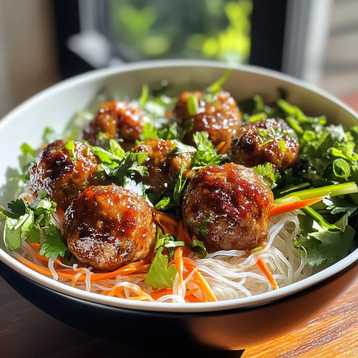 Aromatische Geschmackserlebnisse: Die Kombination aus saftigen, karamelisierten Fleischbällchen und der spritzigen Nuoc Cham-Sauce bringt einen aufregenden vietnamesischen Flair auf den Tisch.