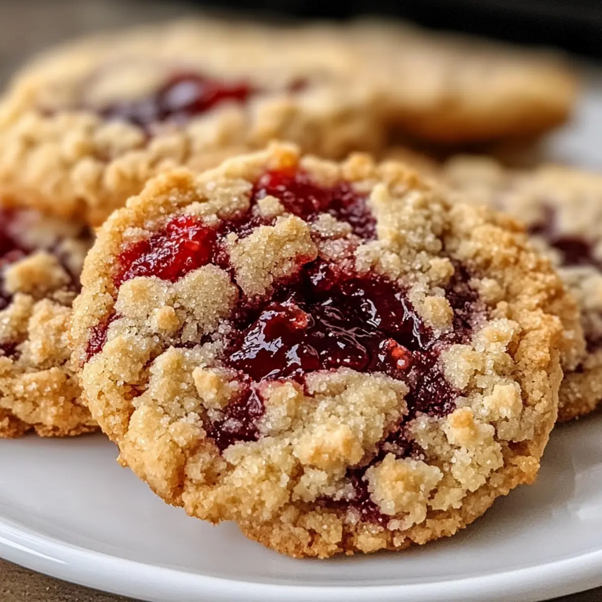Diese Buttrigen Himbeerkekse mit Streuseln sind nicht nur ein Genuss, sondern auch perfekt für die Vorbereitung im Voraus! Du kannst den Keksteig bis 48 Stunden im Kühlschrank aufbewahren, was dir wertvolle Zeit für geschäftige Tage spart. Einfach den Teig in Frischhaltefolie wickeln und wenn du bereit bist, aus dem Kühlschrank nehmen, etwa 30 Minuten bei Raumtemperatur stehen lassen, damit er sich leichter verarbeiten lässt. Die Füllung kannst du ebenfalls im Voraus zubereiten und im Kühlschrank aufbewahren, um die Geschmackstiefe zu maximieren. Wenn du bereit bist, die Kekse zu backen, drücke den Teig in die Muffinförmchen, füge die Himbeermarmelade hinzu und streue den restlichen Teig darüber, bevor du sie für 18-22 Minuten backst. So genießt du frische Kekse mit minimalem Aufwand und maximalem Genuss!
