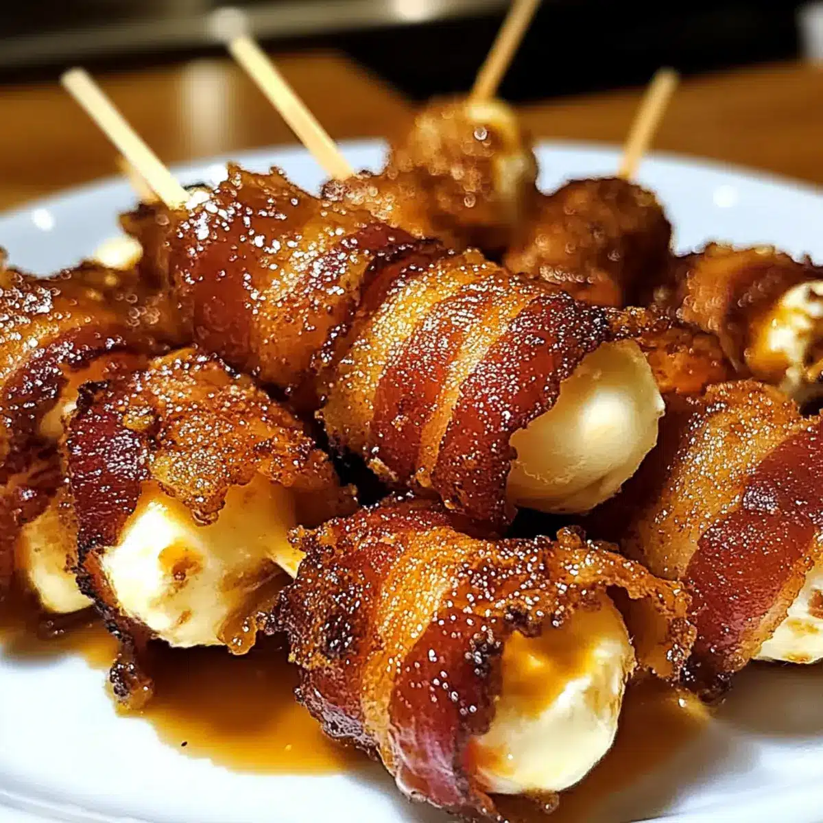 Knusprige Bacon Mozzarella Poppers mit Ahornglasur