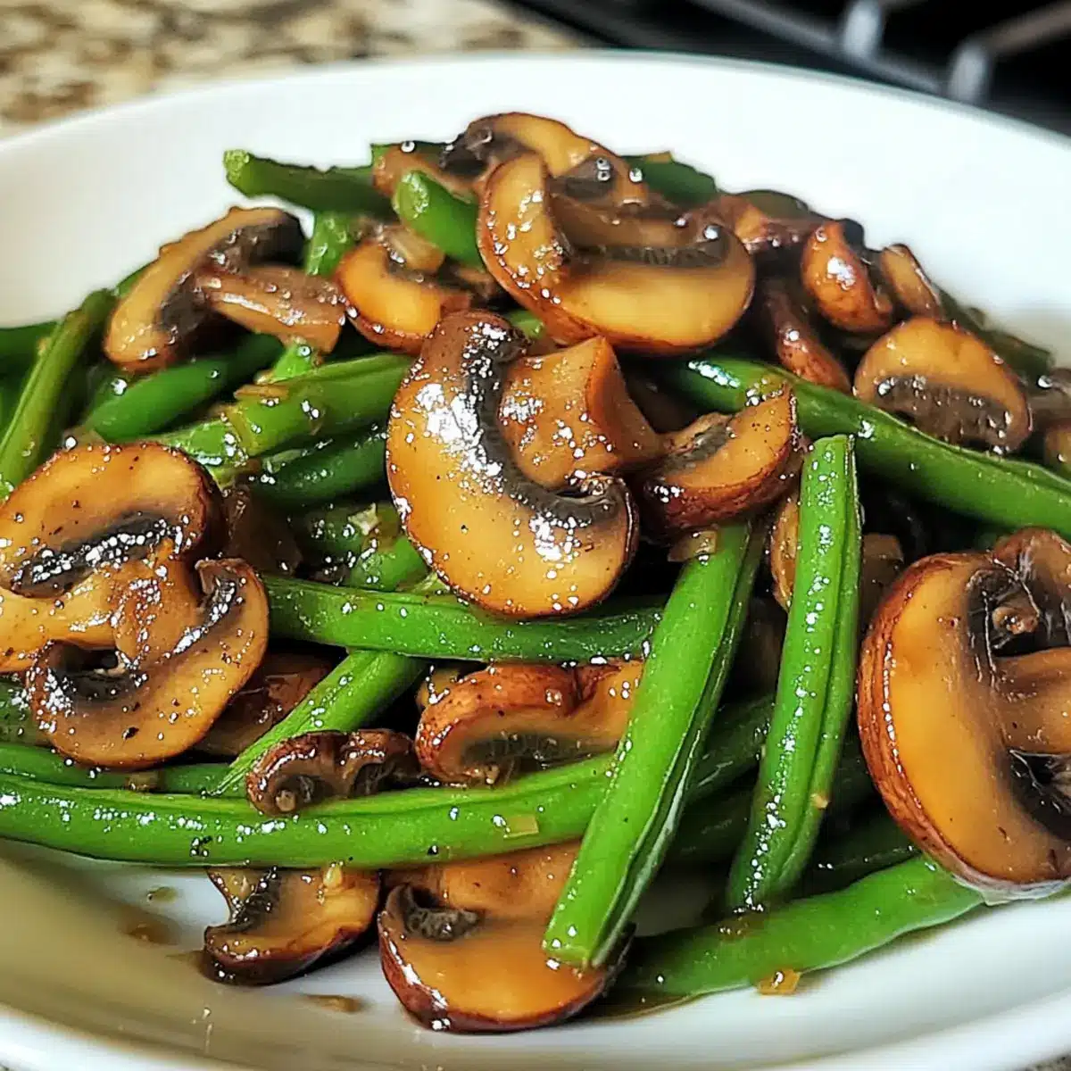 Gebratene Champignons und grüne Bohnen in 30 Minuten