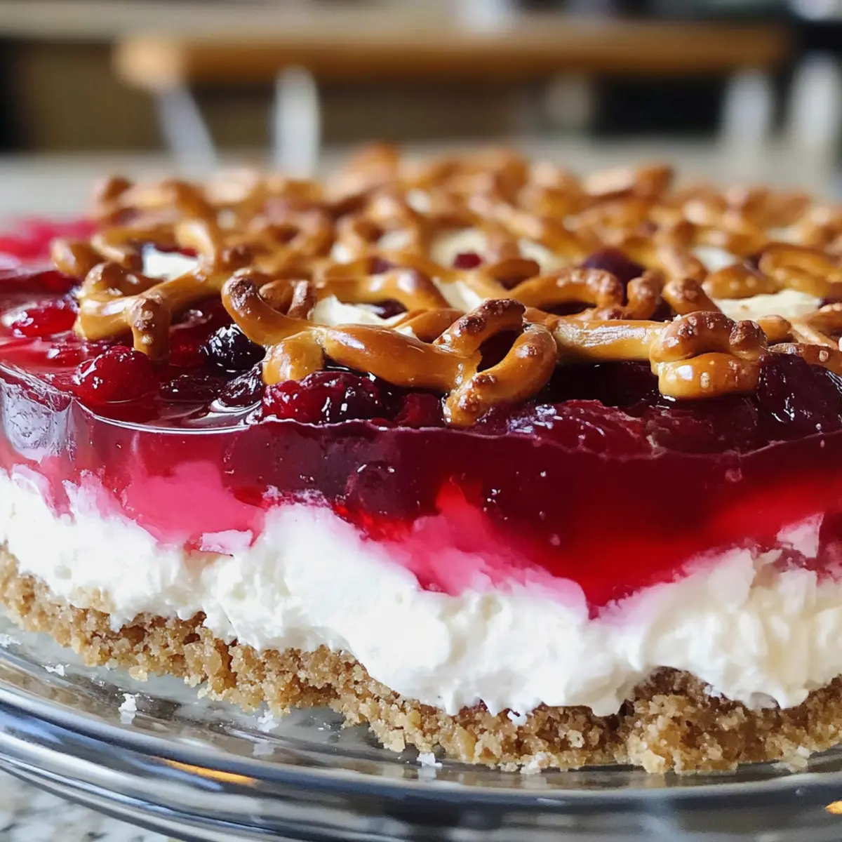 Cranberry-Geläesalat mit knusprigem Brezelboden