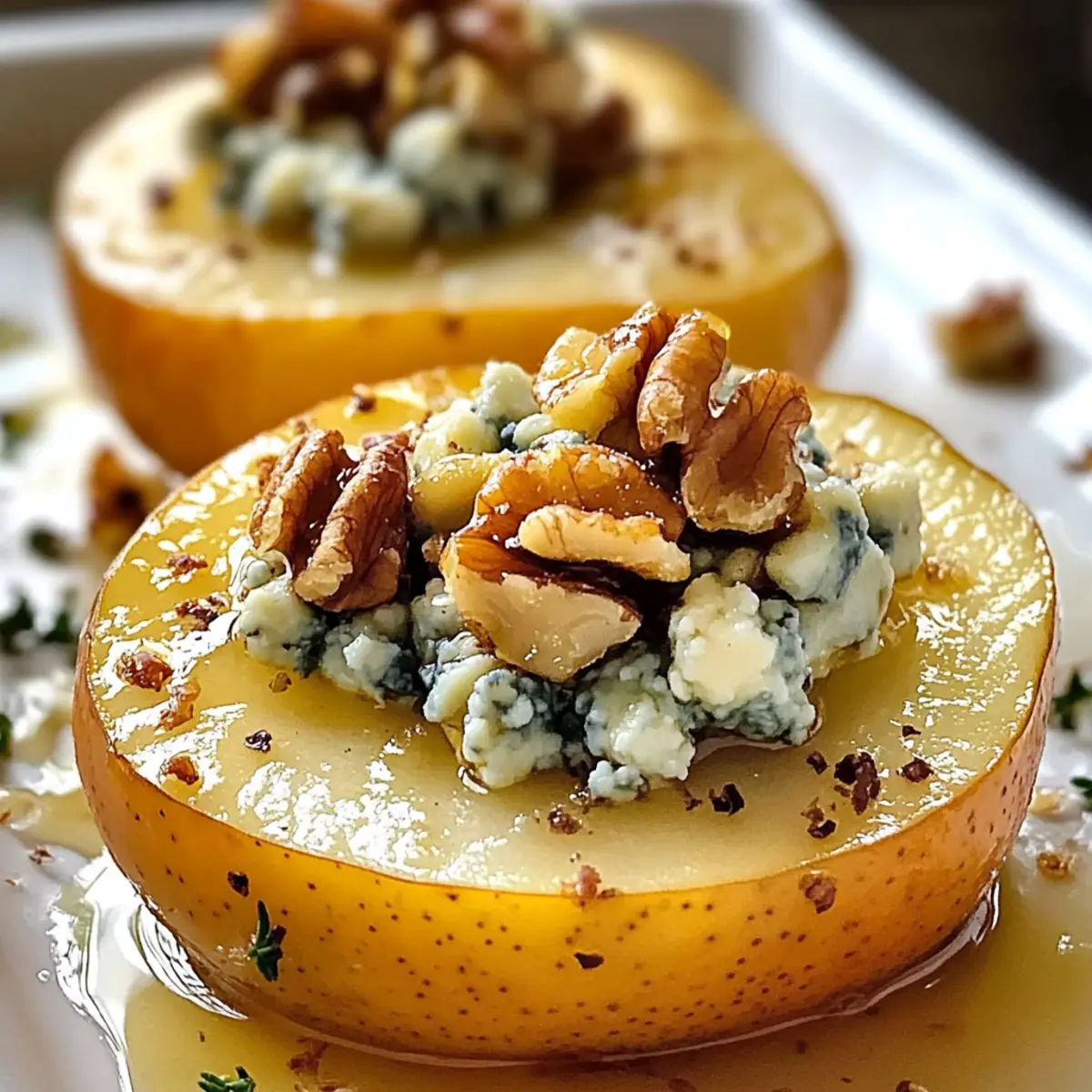 Einfache geröstete Birnen mit Blauschimmelkäse und Walnüssen