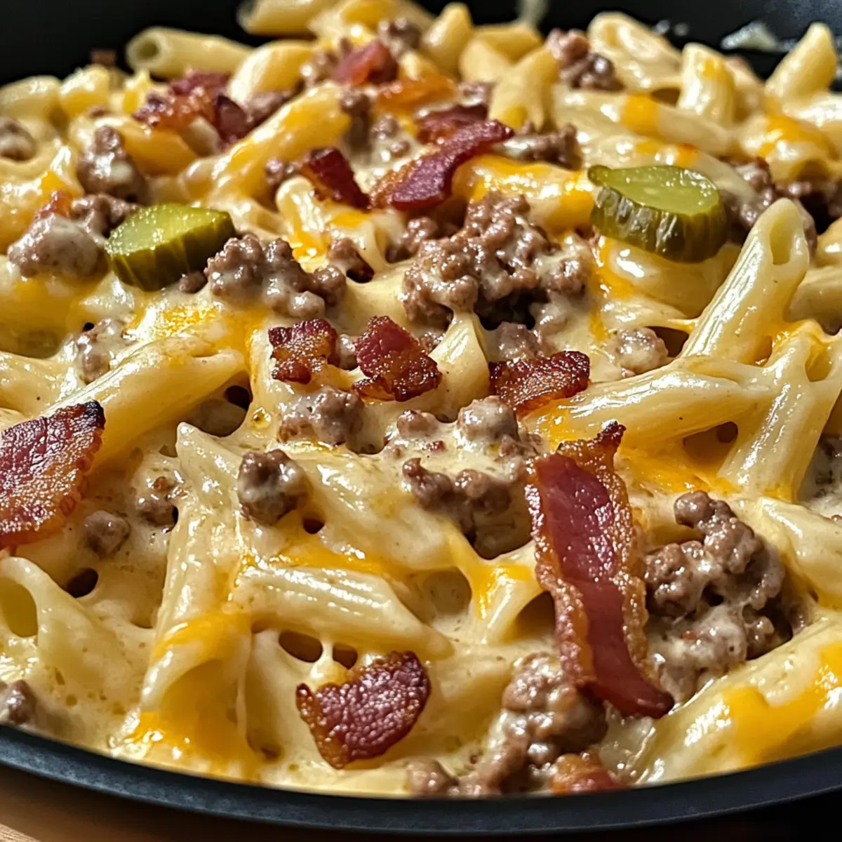 Bacon Käseburger Alfredo Pasta für perfekten Genuss