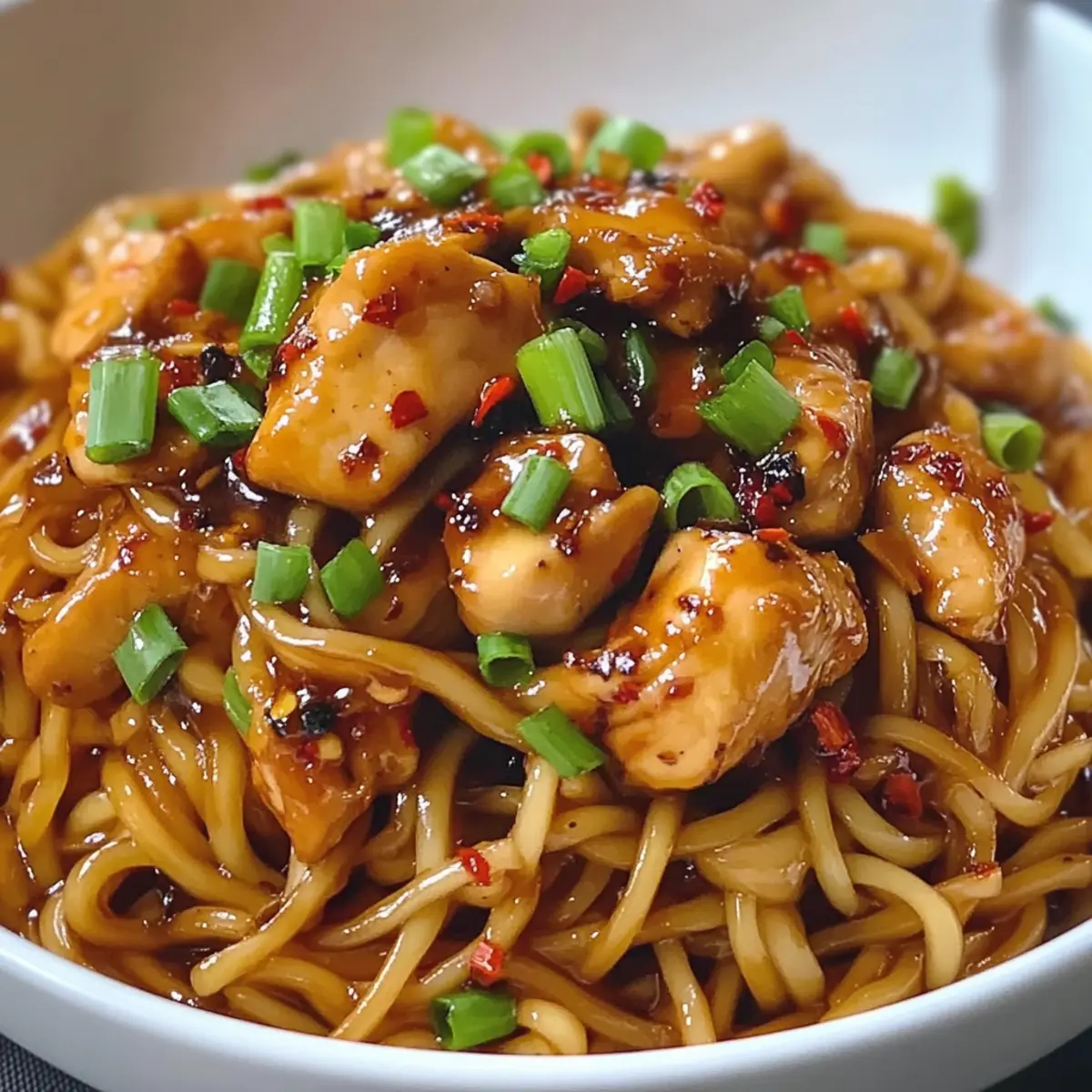 Klebrige Knoblauch-Hühnchen-Nudeln Rezept, schnell genießen
