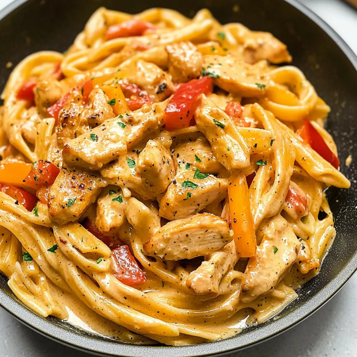 Cashew-Creme Cajun Hähnchen Pasta für den Genuss
