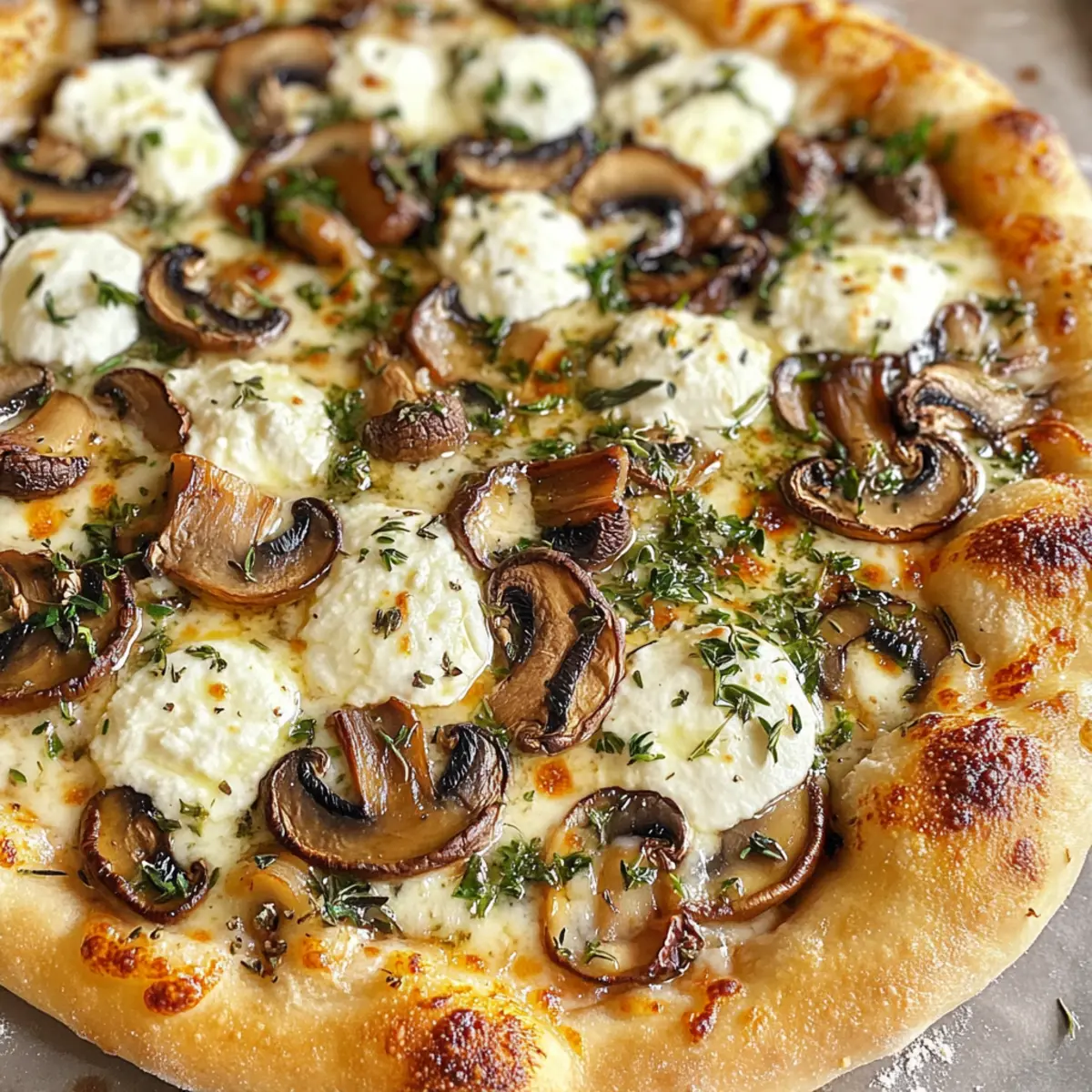 Weiße Pilz Pizza mit cremigem Käsegenuss