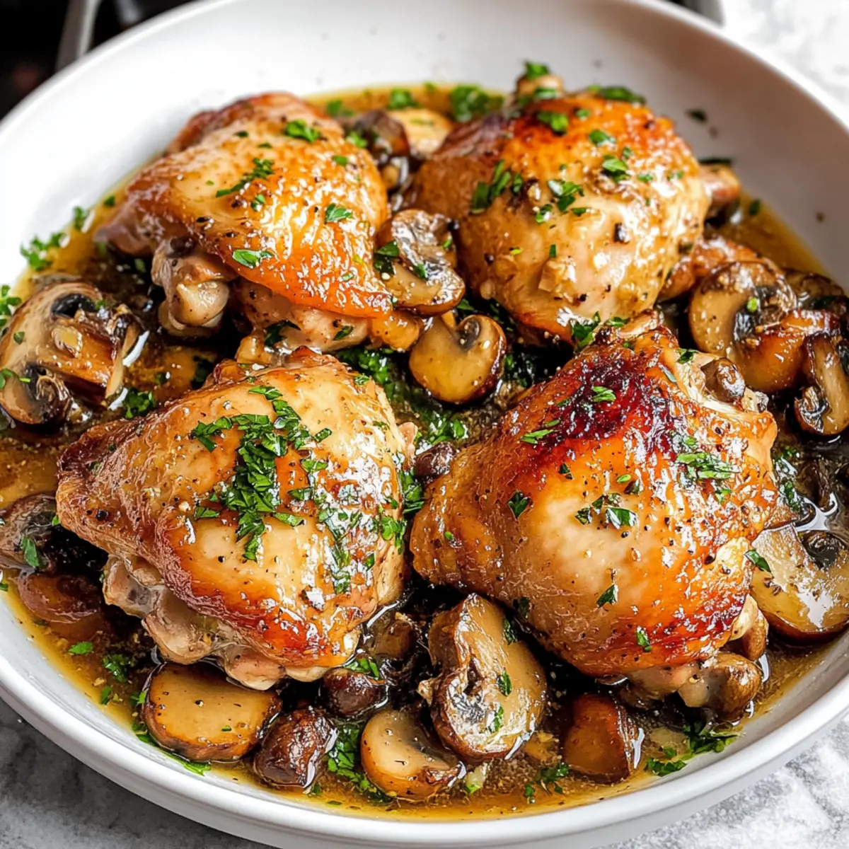 Knoblauch Pilz Hähnchenschenkel in Buttersoße