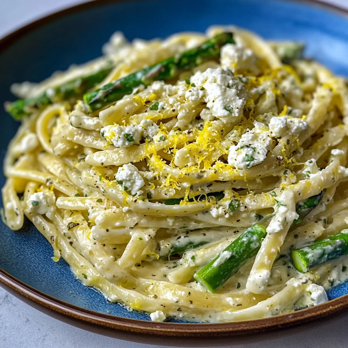 Cremige Zitronen-Feta-Pasta Rezept mit Spargel
