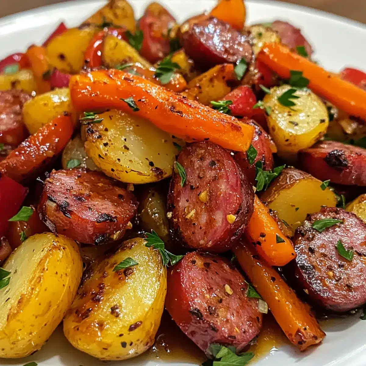 Ein-Pfannen-Honig-Knoblauch-Kielbasa für schnelles Kochen