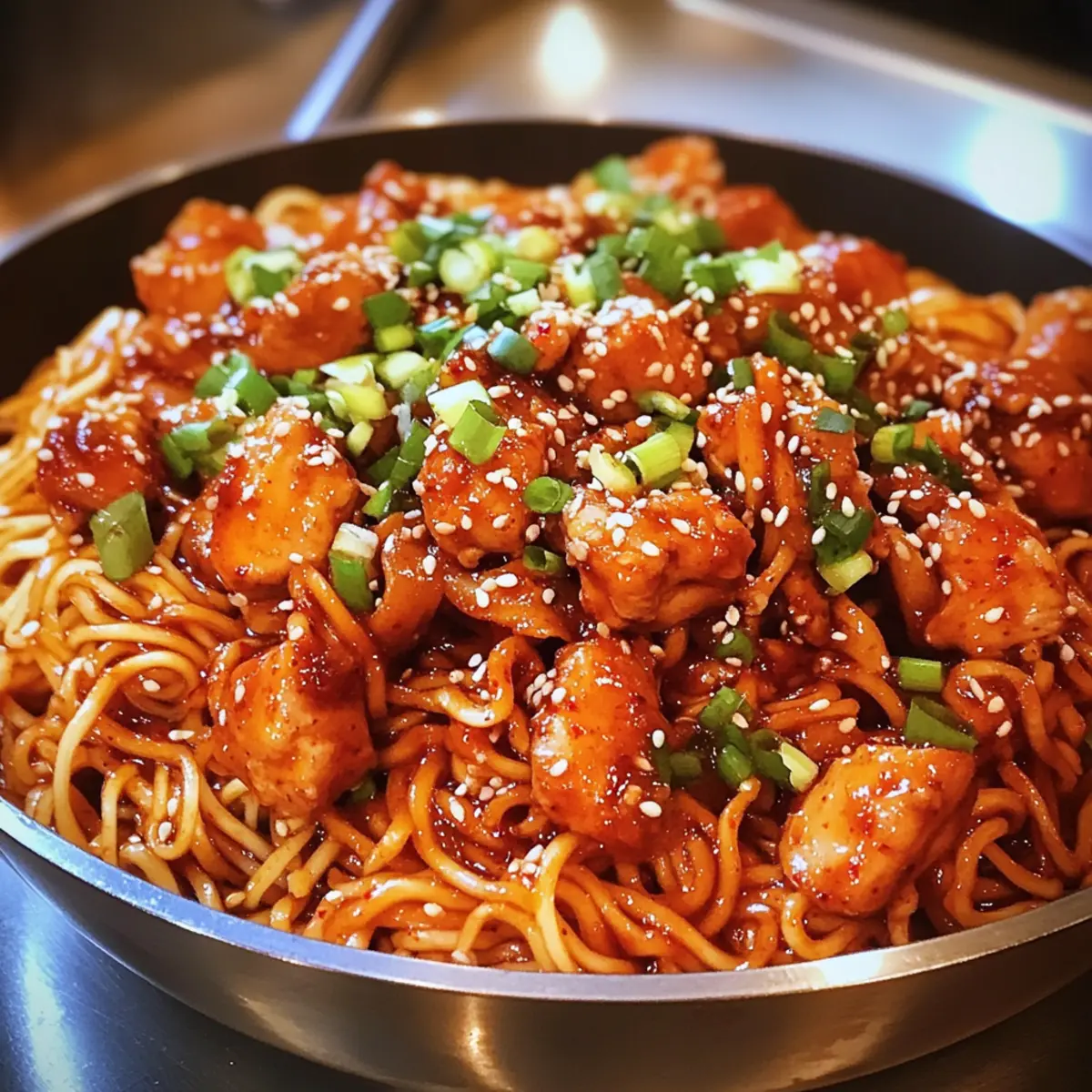 Koreanische scharfe Hähnchen-Nudeln für Zuhause