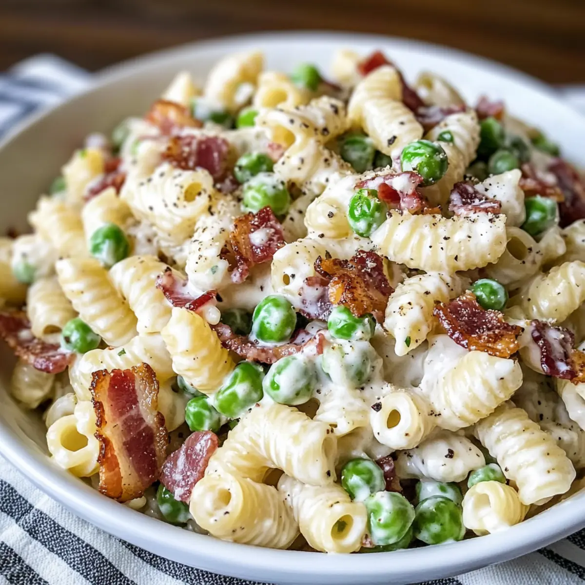 Cremiger Nudelsalat mit Bacon und Erbsen