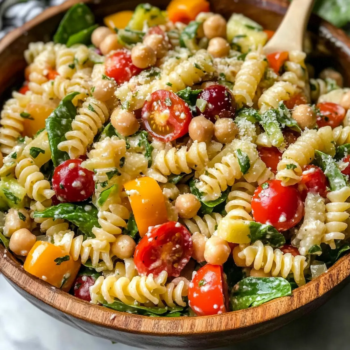 Italienischer Nudelsalat mit Kichererbsen und Gemüse