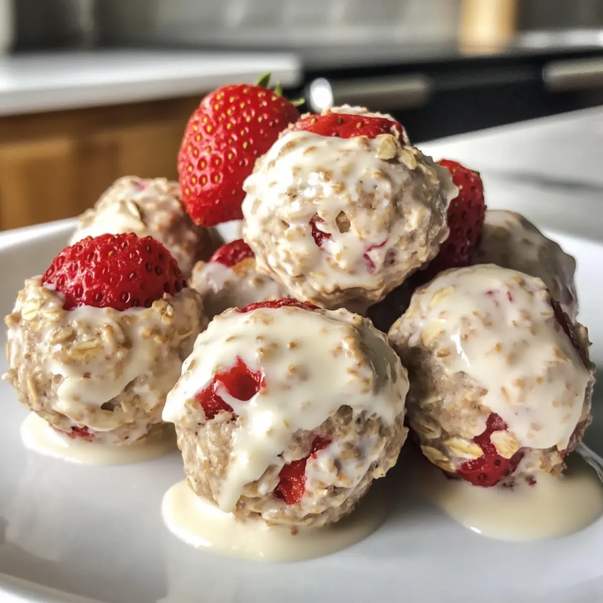 Erdbeerkäsekuchen Proteinbälle für gesunde Snacks