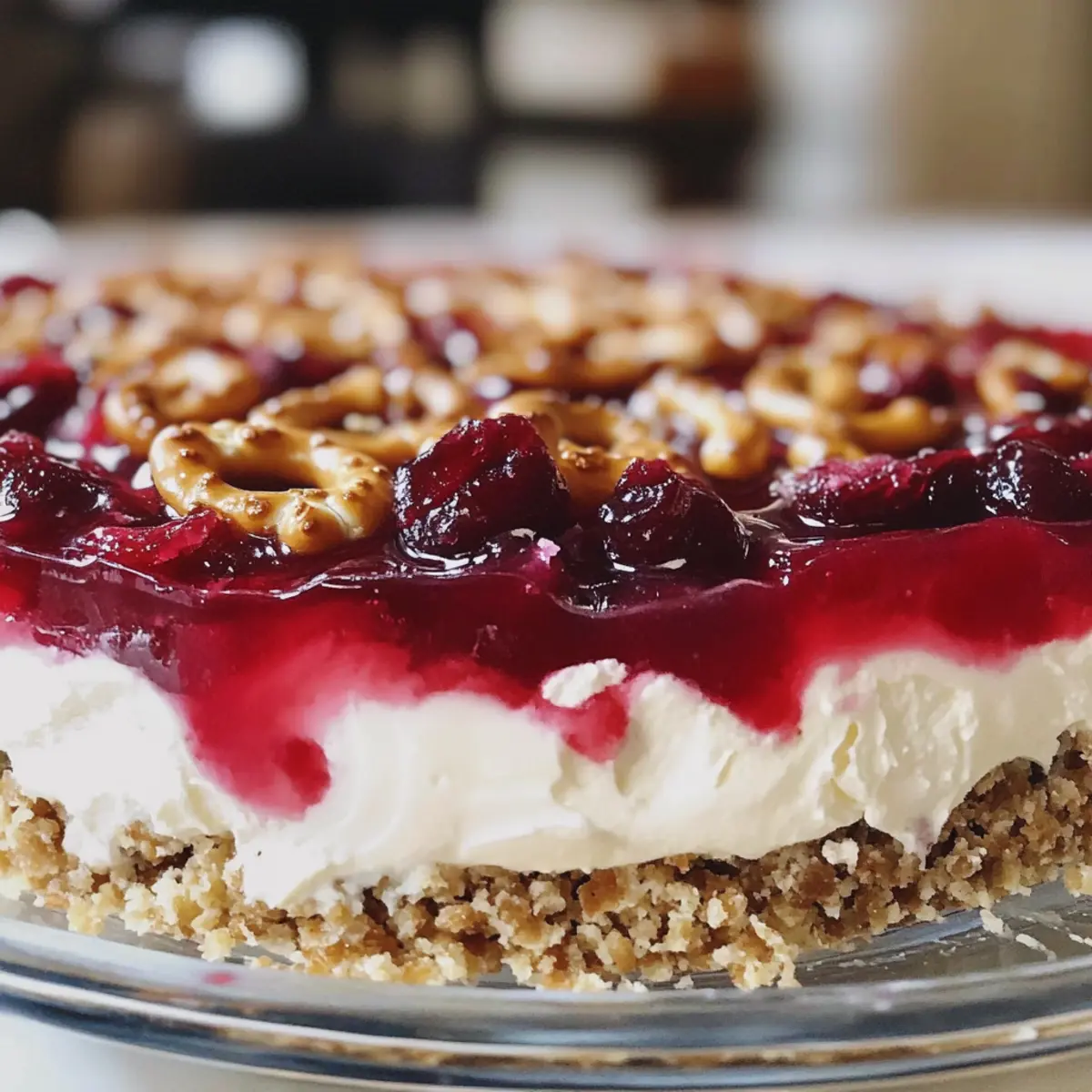 Cranberry-Geläesalat mit knusprigem Brezelboden