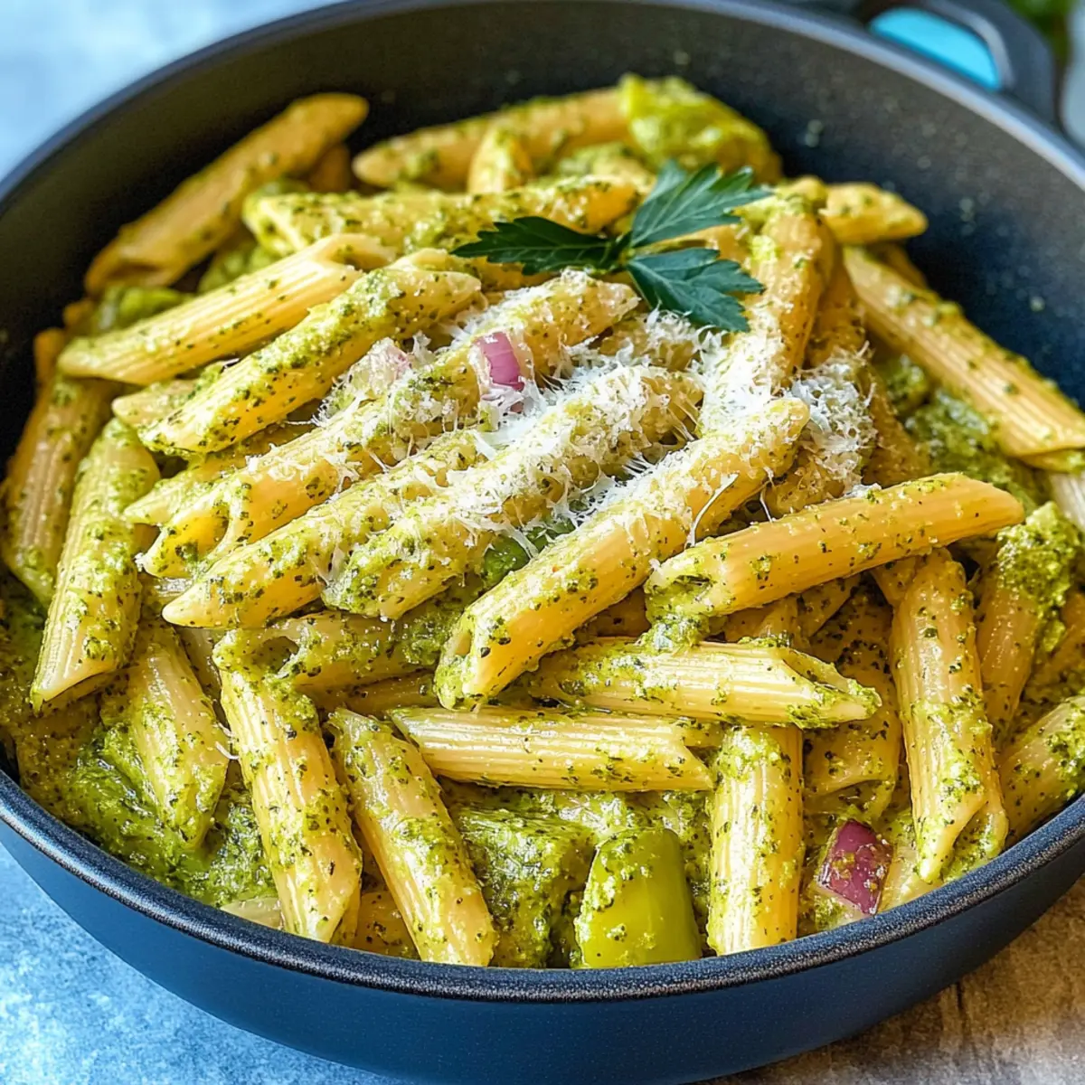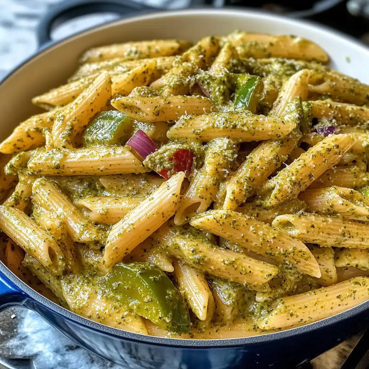 Eines Abends, während ich die neuesten Gerichte ausprobierte, hatte ich plötzlich einen kreativen Einfall, der mein Herz höher schlagen ließ: Cremige Pesto-Sauce Pasta! Diese köstliche One-Pot-Mahlzeit ist nicht nur unglaublich schnell zubereitet, sie vereint auch die frischen Aromen von Basilikum und eine cremige Textur, die einfach unwiderstehlich ist. Perfekt für hektische Wochentage oder um Freunde beim Abendessen zu beeindrucken, wird dieses Rezept zum neuen Favoriten in deiner Küche. Stell dir vor, wie du mit einem einzigen Topf voller Genuss die Gesichter deiner Lieben siehst, während sie den ersten Bissen genießen. Neugierig, wie du diese delikate Kombination von Geschmack und Einfachheit in deiner eigenen Küche zaubern kannst? Lass uns gemeinsam loslegen!