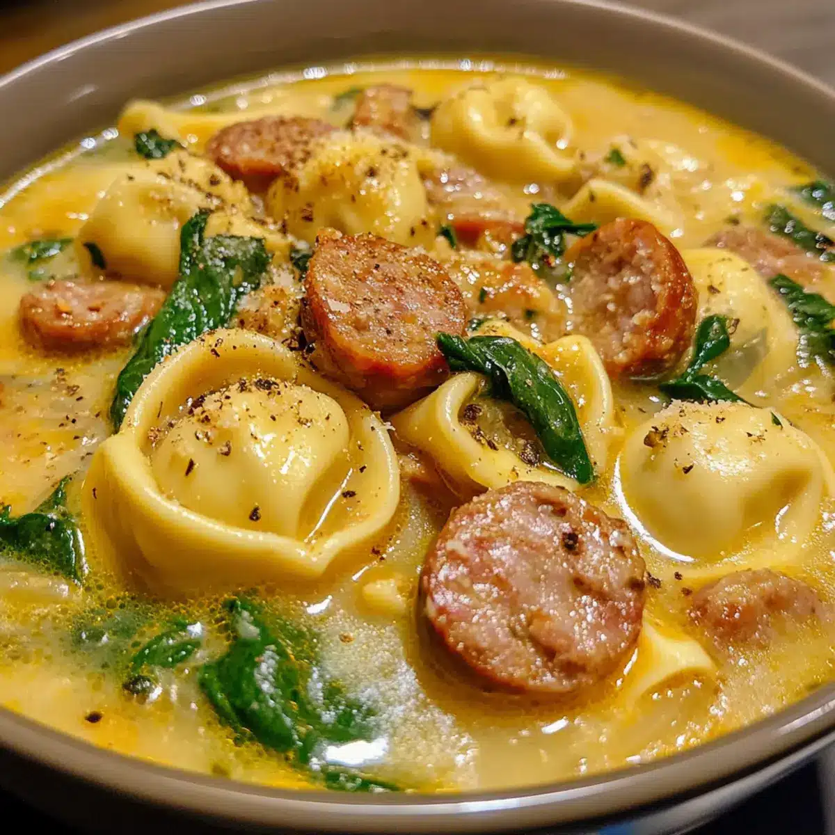 Cremige Wurst- und Tortellini-Suppe für kalte Tage