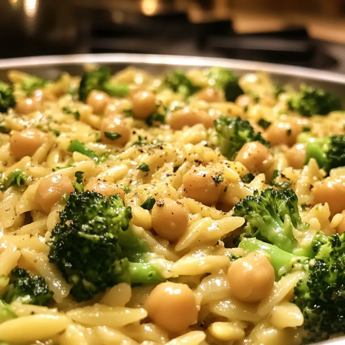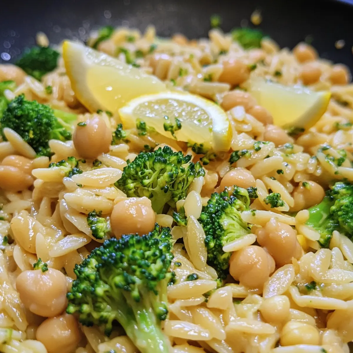 Cremige Zitronen-Orzo mit Kichererbsen und Brokkoli