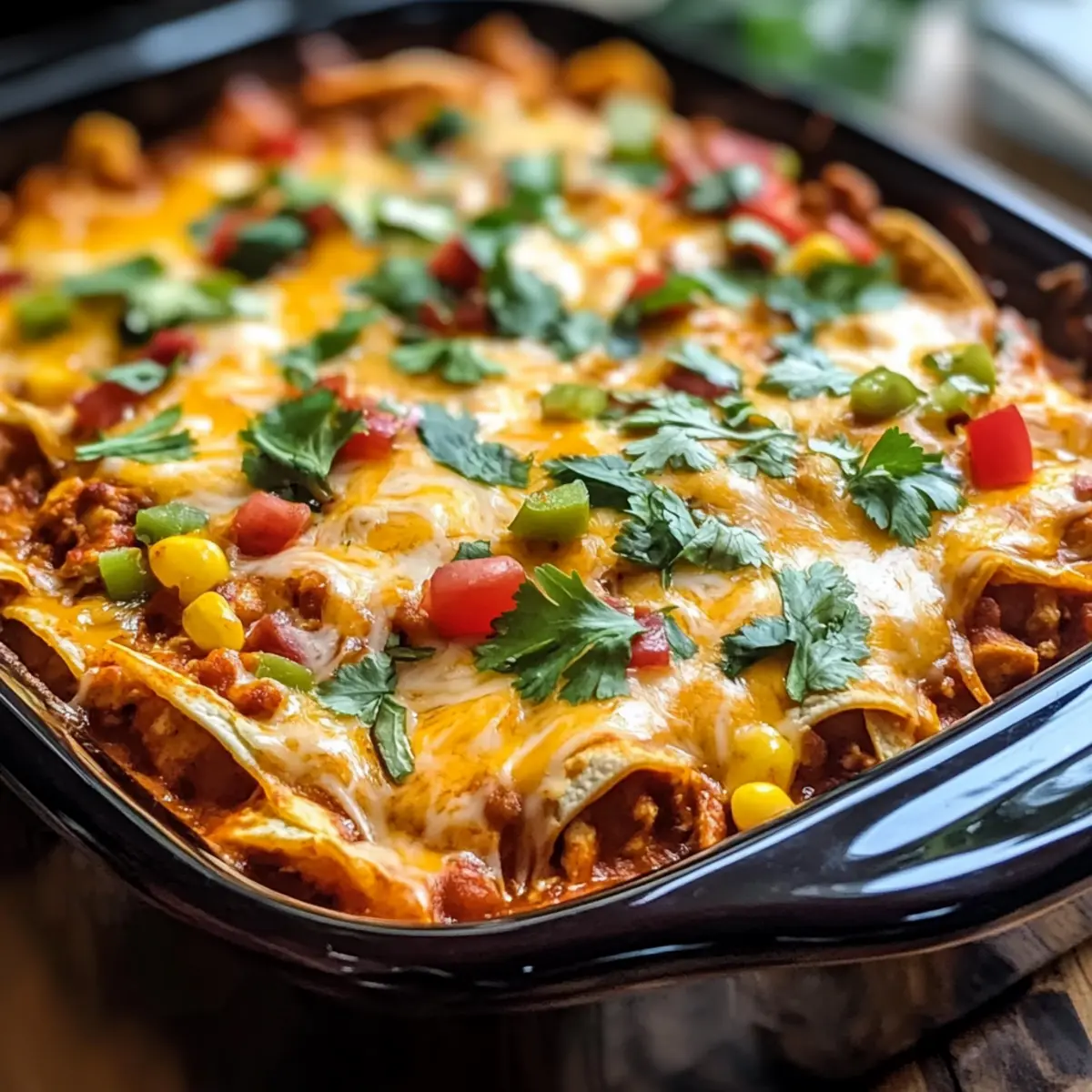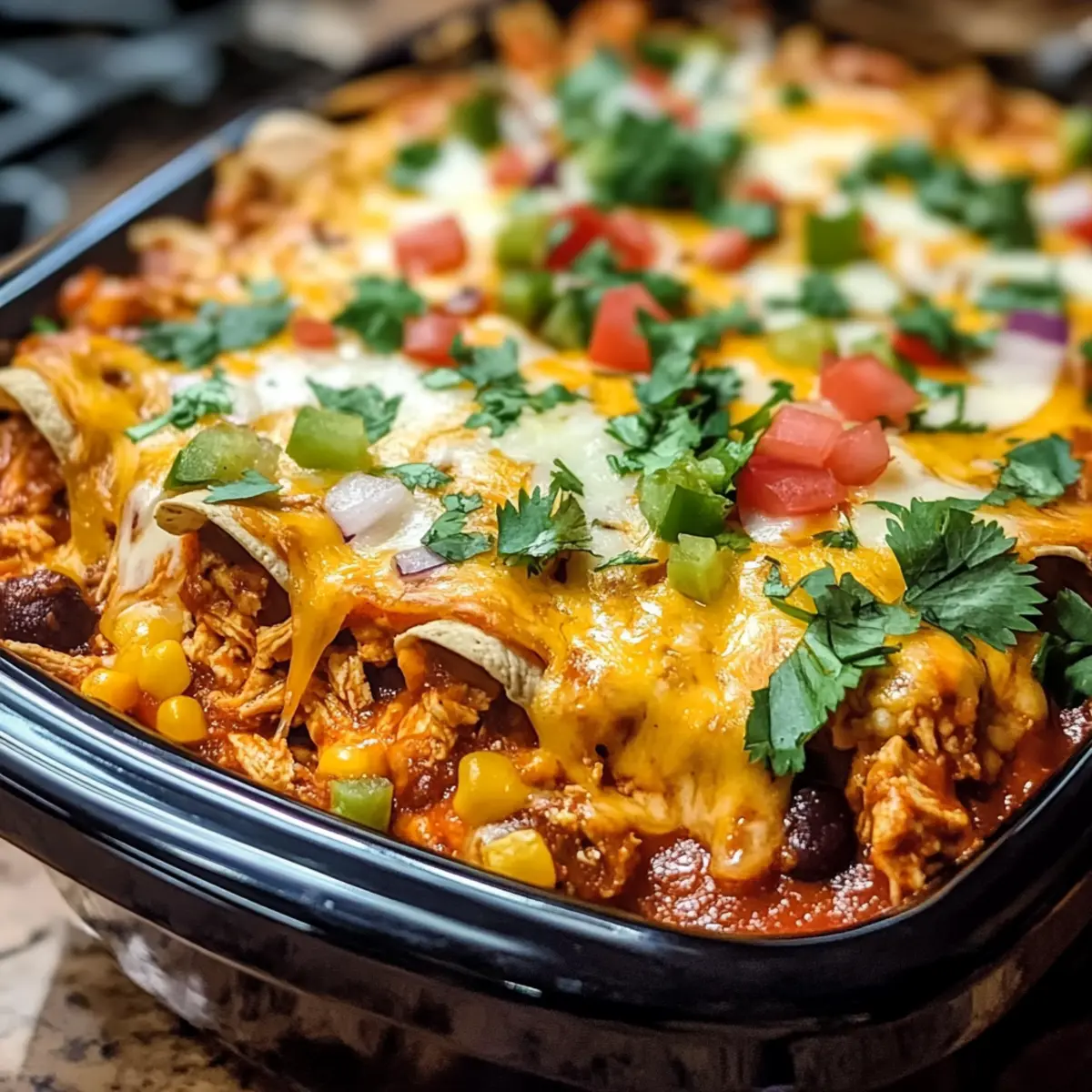 Crockpot Hähnchen Enchilada Auflauf für Genießer