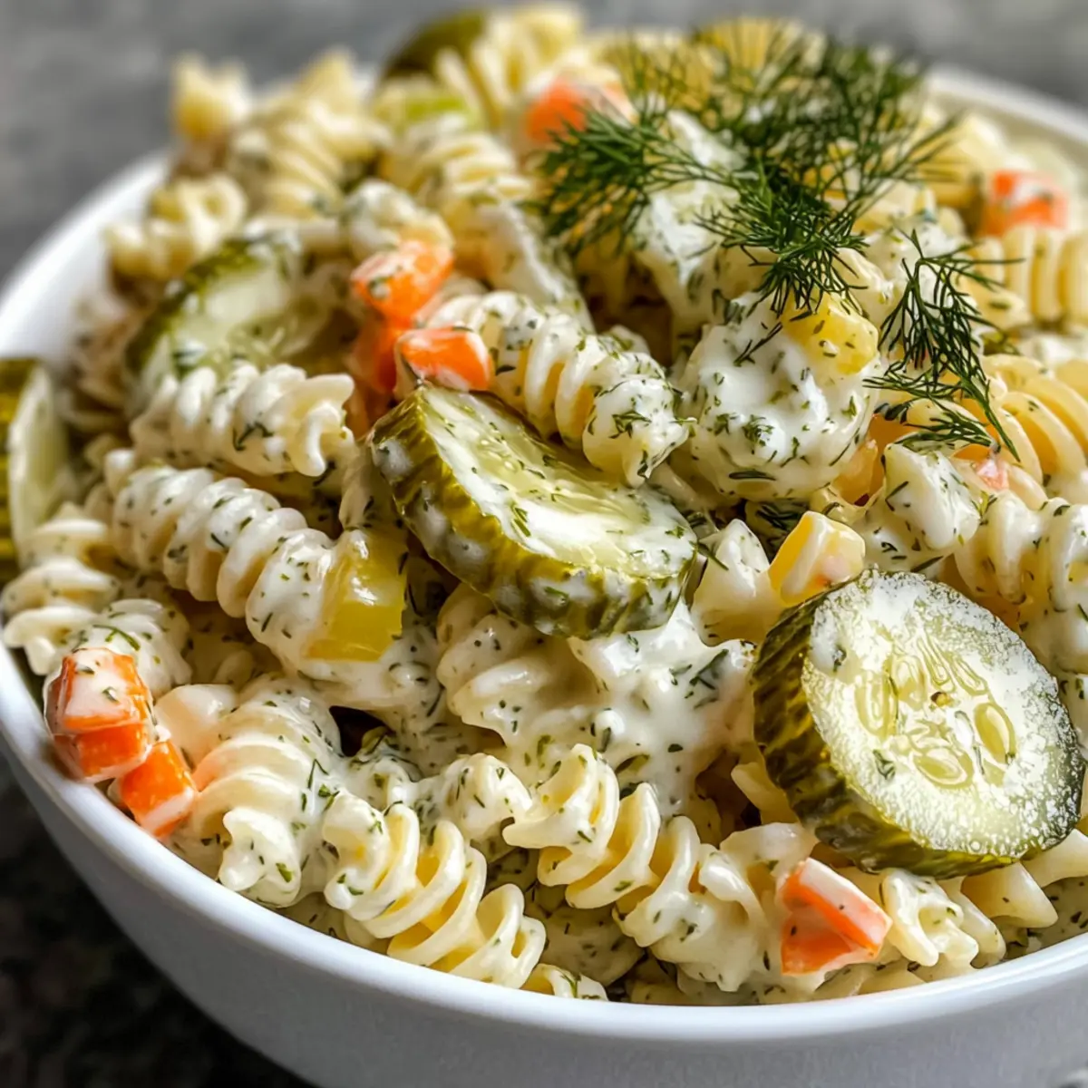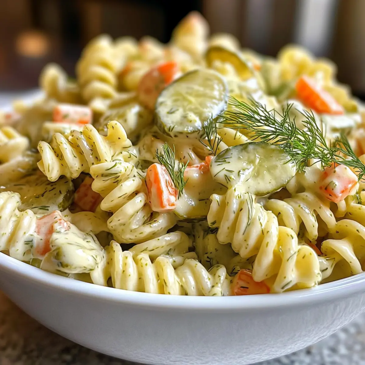 Cremiger Genuss: Der Dill Gurken Nudelsalat sorgt für eine perfekte Mischung aus cremigem Dressing und knackigen Texturen. Erfrischend und würzig: Mit seinem einzigartigen Pickle-Geschmack ist er genau das richtige Gericht für warme Sommertage. Familienfreundlich: Dieser Salat begeistert Groß und Klein und macht jede Grillfeier unvergesslich. Zeitsparend: In nur wenigen Schritten zubereitet, ist er schnell und einfach. Vielseitig: Er kann als Beilage oder Hauptgericht serviert werden, ideal zu Gegrilltem oder auf Buffets. Mach dich bereit, deinen Gästen einen frischen Geschmack zu bieten, der Erinnerungen weckt!