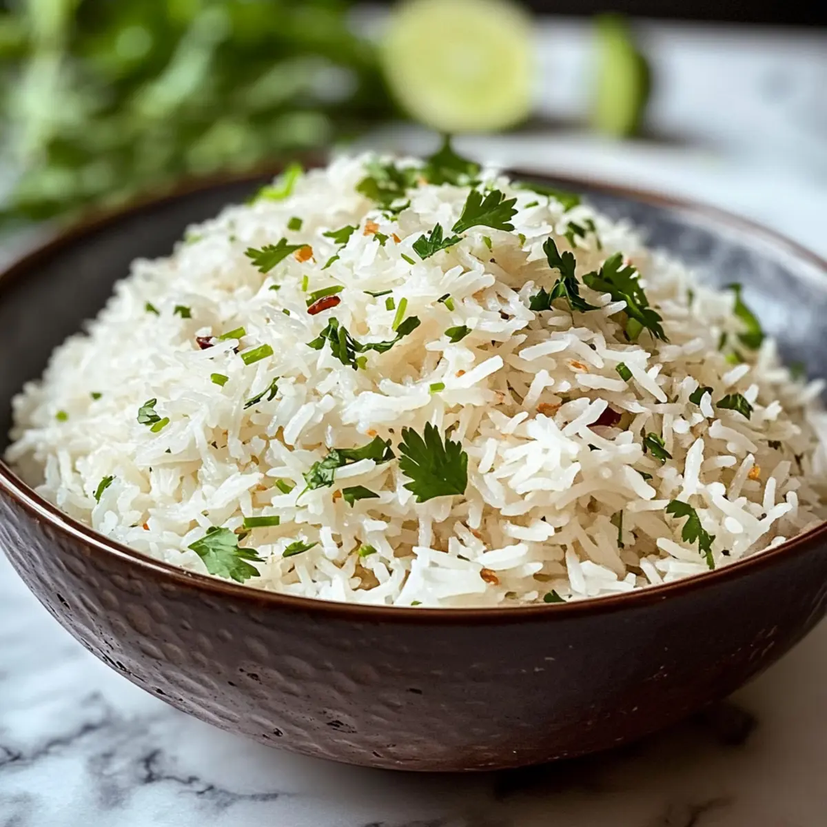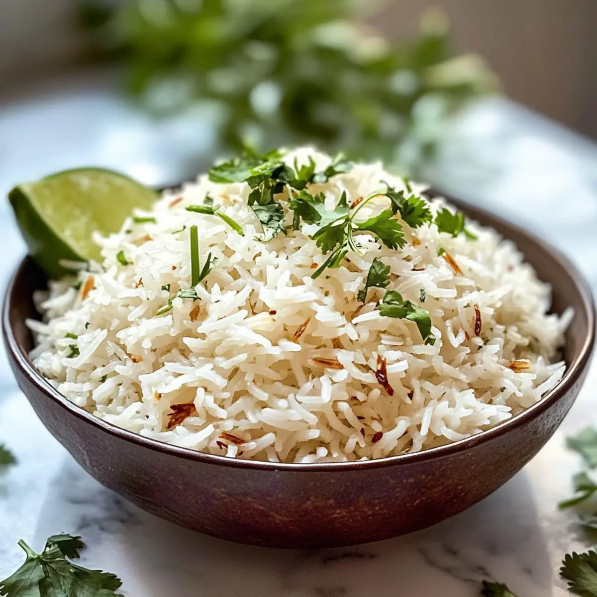 Lockere den Reis mit einer Gabel auf, um die Körner zu trennen und ihm eine luftige Konsistenz zu verleihen. Füge nach Belieben optionale Garnituren wie Limettenschale oder frischen Koriander hinzu, um einen frischen Akzent zu setzen. Dein einfaches Kokosnussreis Rezept ist jetzt bereit, serviert zu werden!