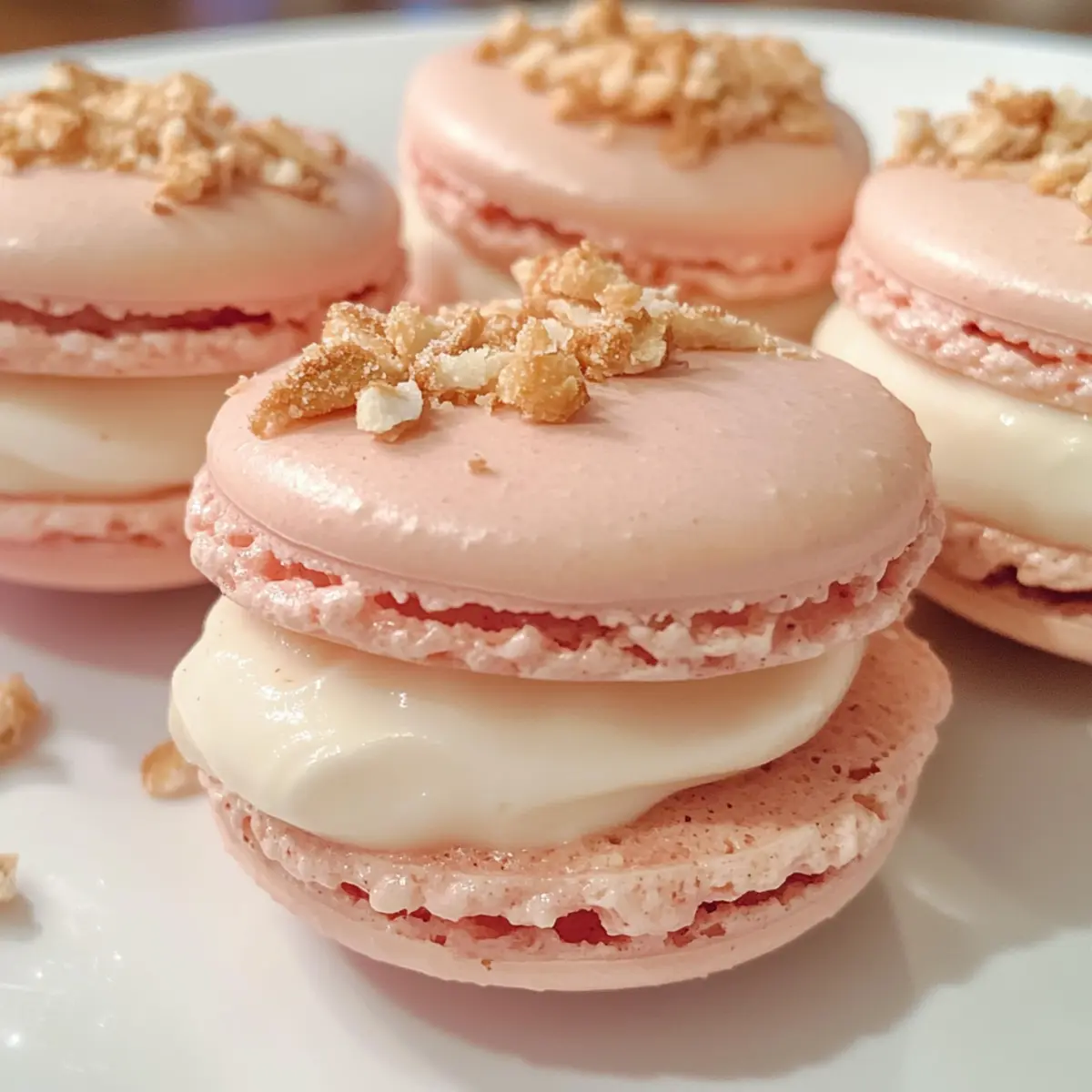 Ein Fest der Aromen: Diese Erdbeer-Käsekuchen-Macarons vereinen die Frische von Erdbeeren mit der Cremigkeit von Frischkäse in einem zarten Mandelteig.