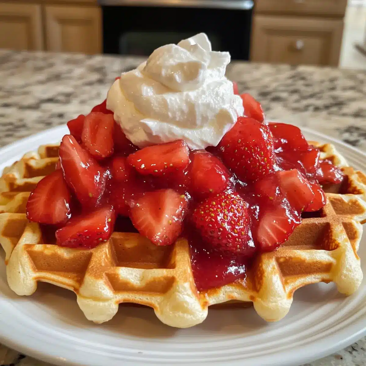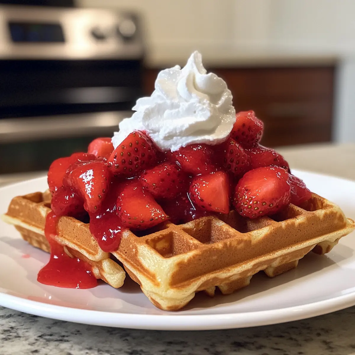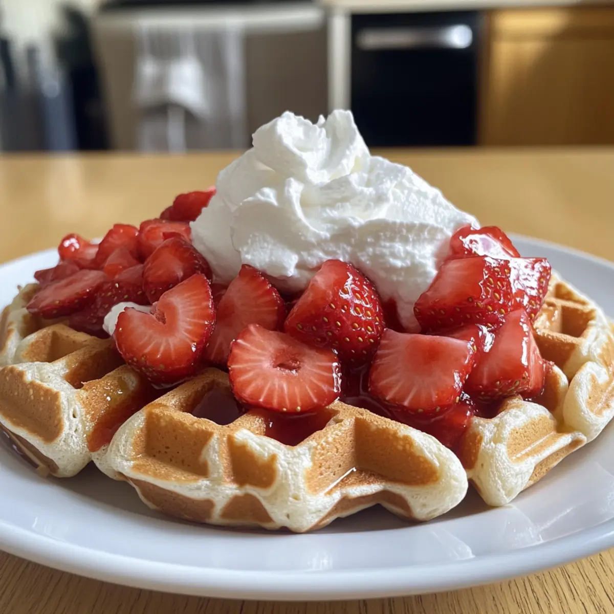 - Die Waffeln warm servieren und nach Belieben mit zusätzlichen Erdbeeren garnieren.