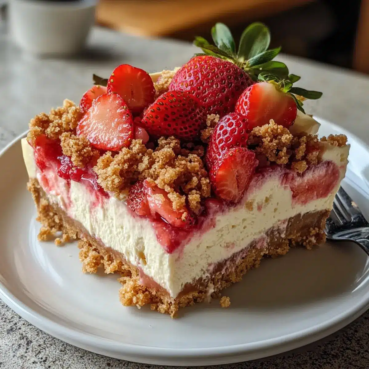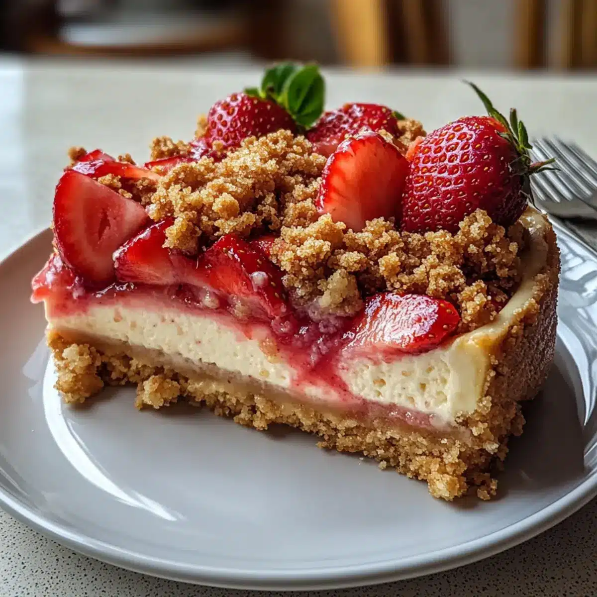 Mach dich bereit, mit diesem Erdbeere Crumble Käsekuchen ein Stück herzlichen Genusses zu erleben!