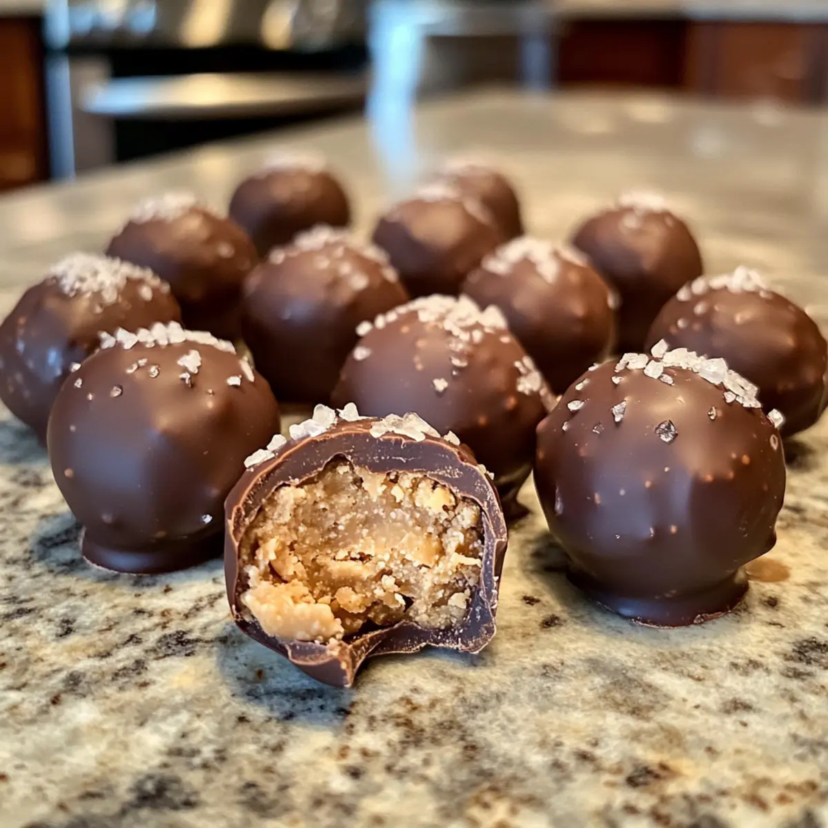 - Sobald alle Bissen in Schokolade getaucht sind, mit flakigem Meersalz bestreuen.