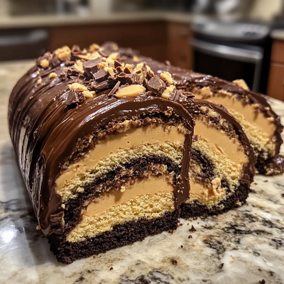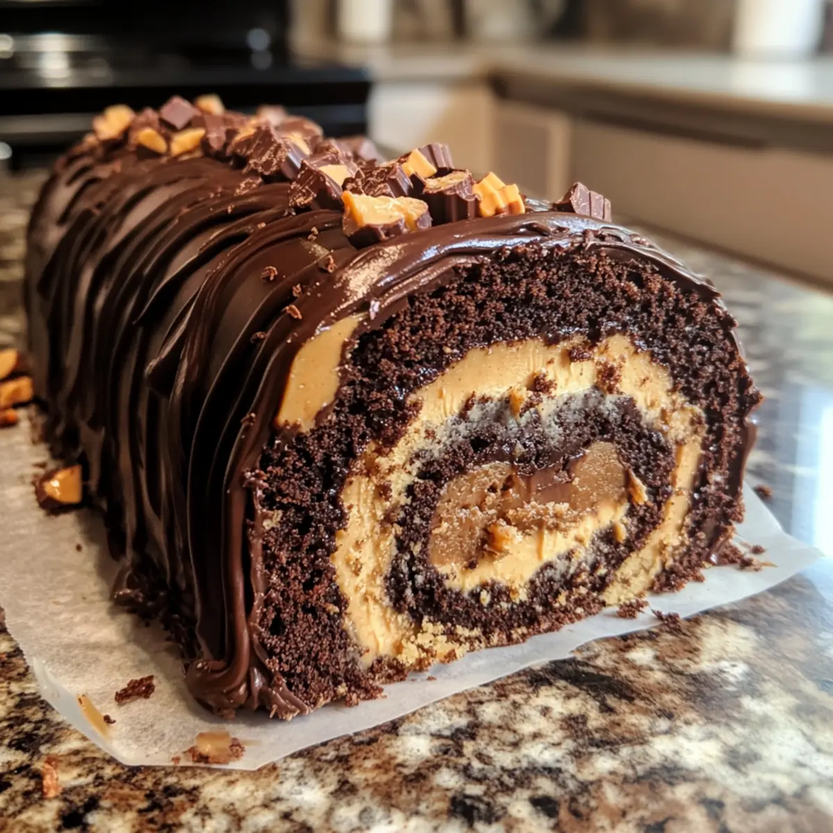 Diese köstliche Erdnussbutter-Tasse Schokoladenrolle ist ein wahres Fest für die Sinne und möchte von weiteren Gaumenfreuden begleitet werden!