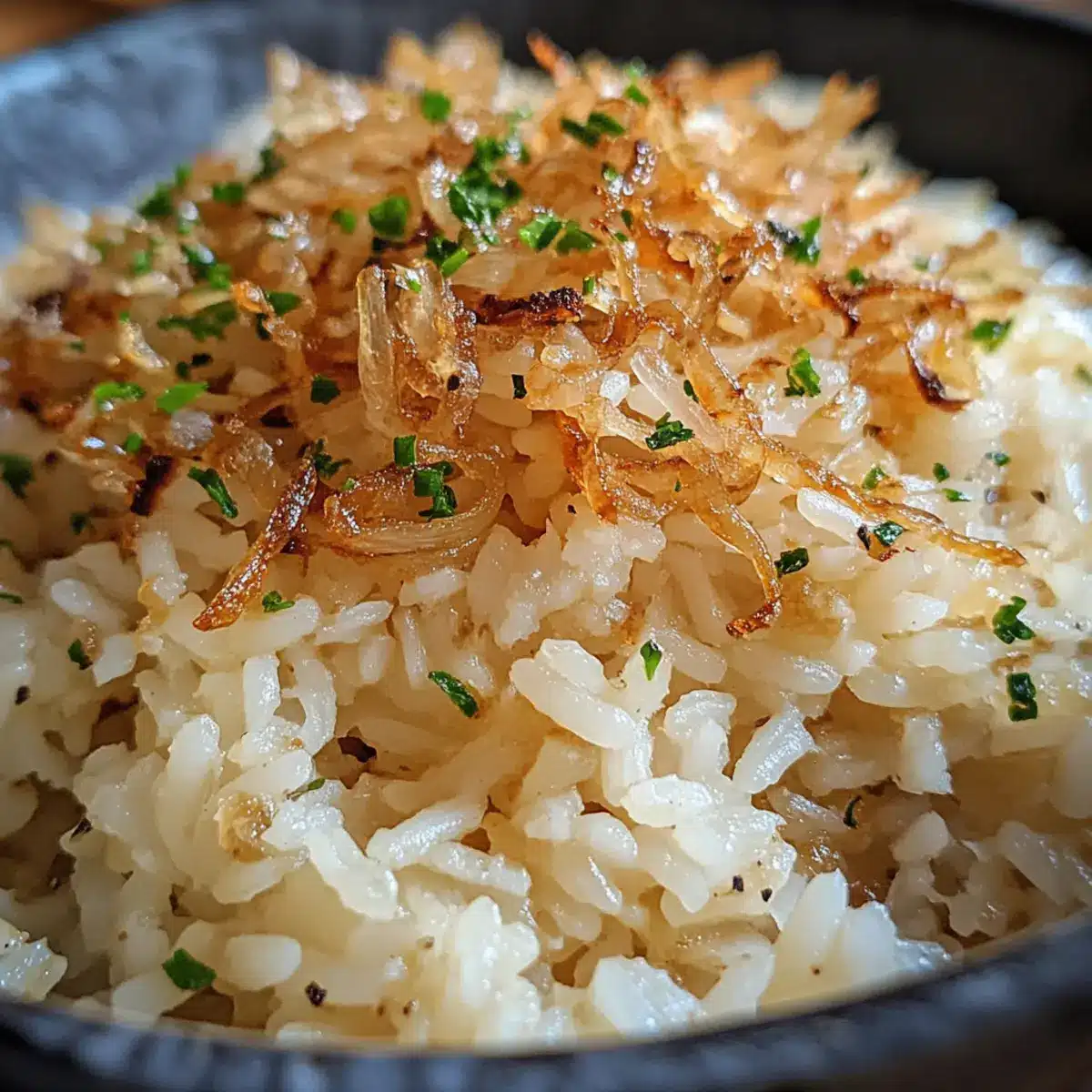Ein einladender Duft von karamellisierten Zwiebeln erfüllt die Küche, während ich an meinem neuen Lieblingsgericht arbeite: Französischer Zwiebel-Butter-Reis. Diese einfache, aber köstliche Beilage verwandelt gewöhnlichen Reis in ein cremiges, wohltuendes Erlebnis. Perfekt für schnelle Abendessen unter der Woche oder festliche Anlässe, sorgt sie für ein Stück herzhafte Gemütlichkeit auf jedem Teller. Mit nur wenigen Zutaten erhältst du eine faszinierende Geschmackskombination, die sowohl Vegetarier als auch Fleischliebhaber begeistert. Dieser Rezeptfavorit ist zudem freezer-friendly und somit ideal für lässige Meal-Prepping-Wochen. Bist du bereit, in die Welt des butterigen Genusses einzutauchen?