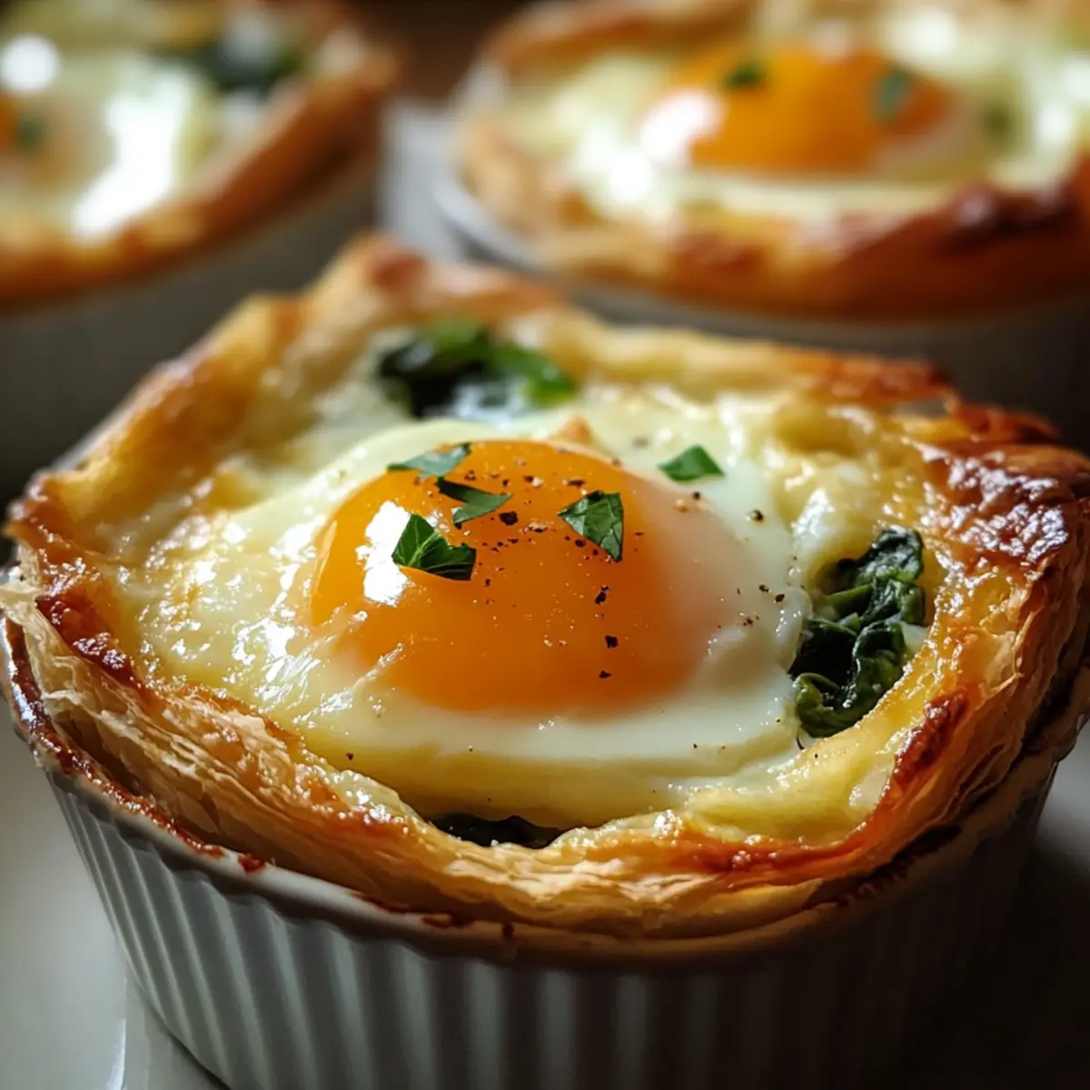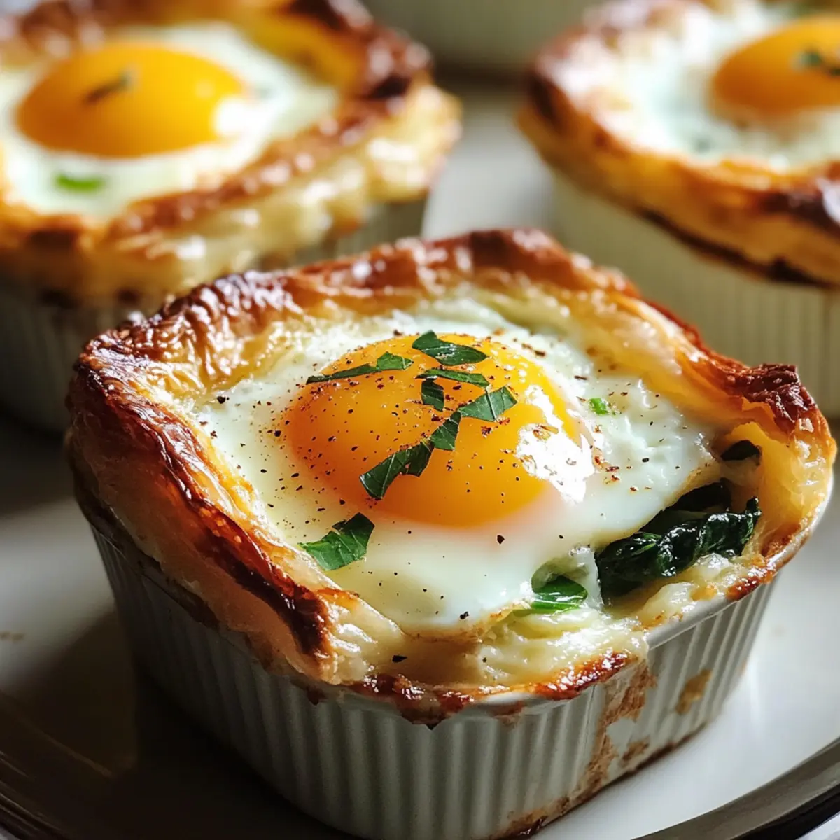 Die Gebratenen Eier Napoleon sind ideal für alle, die Zeit sparen und gleichzeitig ein köstliches Gericht zubereiten möchten! Du kannst die cremige Spinatfüllung bis zu 24 Stunden im Voraus zubereiten und im Kühlschrank aufbewahren, damit die Aromen gut durchziehen. Achte darauf, die Eier erst kurz vor dem Backen aufzuschlagen, um die beste Konsistenz zu gewährleisten. Die vorgebackenen Blätterteigkurven lassen sich ebenfalls im Voraus herstellen und können bis zu 3 Tage im Kühlschrank aufbewahrt werden. Wenn du bereit bist zu servieren, fülle die Teigschalen mit der vorbereiteten Füllung, schlage ein Ei auf jede Portion und backe sie für 12 bis 18 Minuten, bis die Eier perfekt gegart sind. Diese einfache Vorbereitung sorgt dafür, dass dein Brunch ohne großen Aufwand gelingt und du mehr Zeit mit deinen Gästen verbringen kannst!