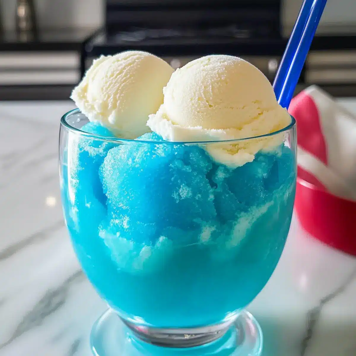 Nehmt eine große Bowle und gebt den gut gekühlten Blue Hawaiian Punch, die Sprite und den Ananassaft hinein. Rührt die Mischung vorsichtig um, bis alles gleichmäßig vermischt ist und die sprudelnde Frische erhalten bleibt. Achtet darauf, keine übermäßige Kohlensäure zu verlieren, um die spritzige Textur des Gefrorenen Schneeball-Punsches zu bewahren.