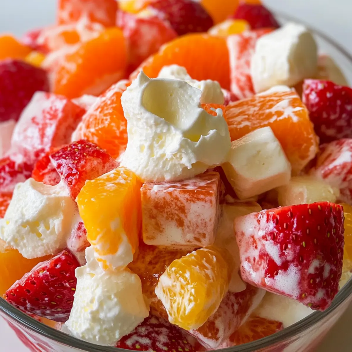 - Mandarinen (aus der Dose, abgetropft) – sorgen für Saftigkeit und Süße; können durch frische Orangen ersetzt werden, wenn gewünscht.