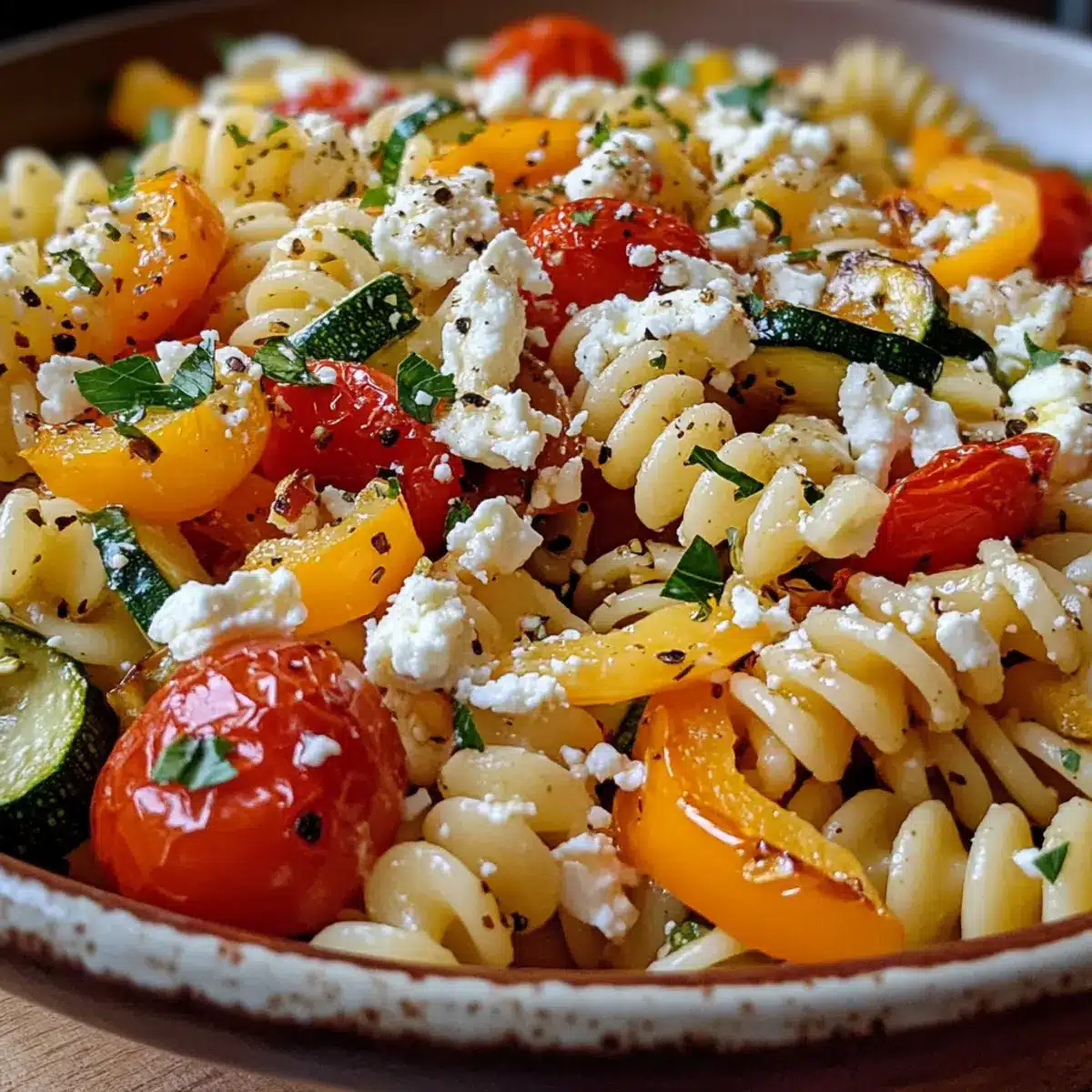 Gesund: Diese Geröstete Gemüse-Pasta mit Feta ist nicht nur sozialitätsfreundlich, sondern auch gesund und nährstoffreich – ideal für eine ausgewogene Ernährung.