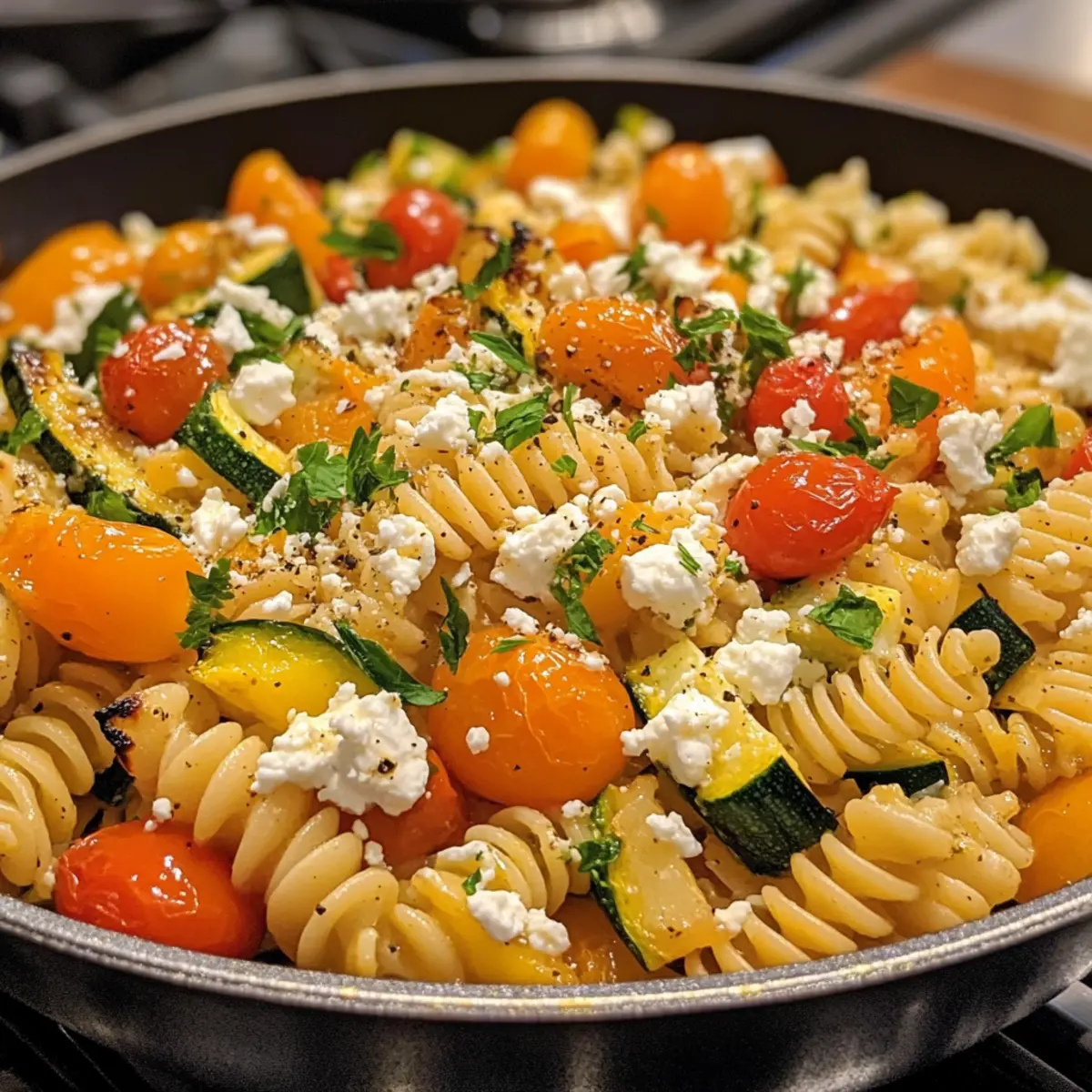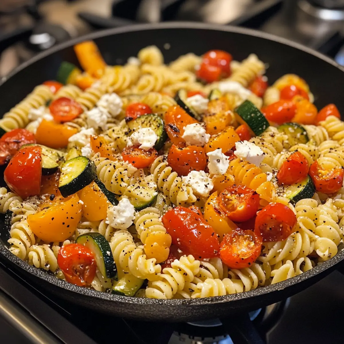Geröstete Gemüse-Pasta mit Feta für schnelle Abende