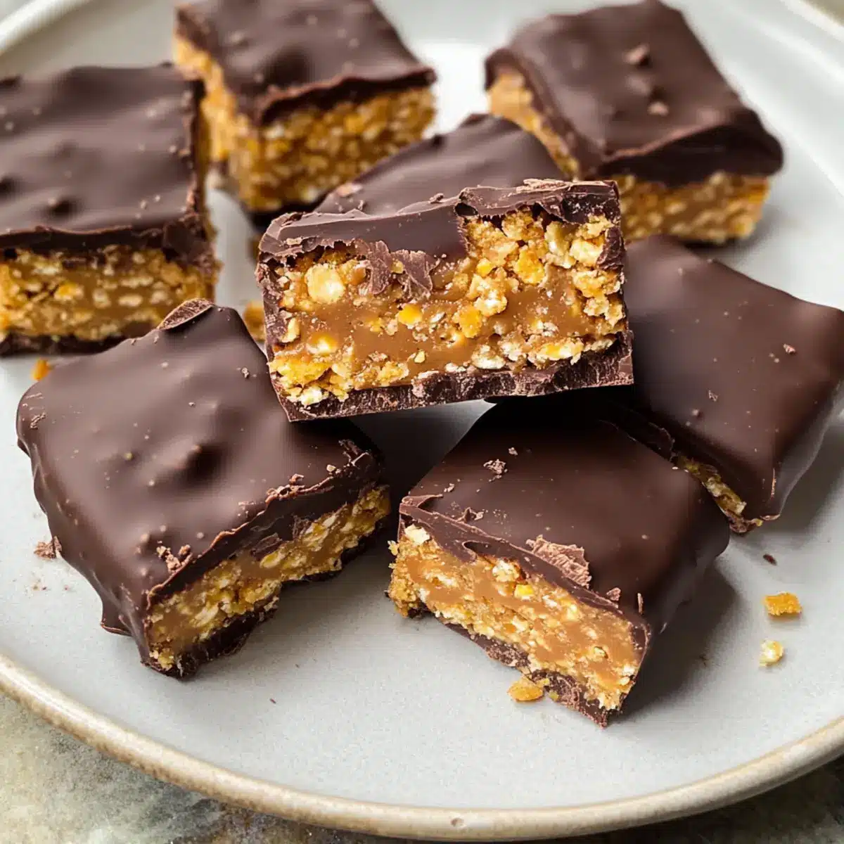 - Schokoladige Vielfalt: Verwenden Sie Zartbitterschokolade für eine intensivere Geschmacksnote. Der bittere Kontrast ergänzt die Süße der Riegel perfekt.