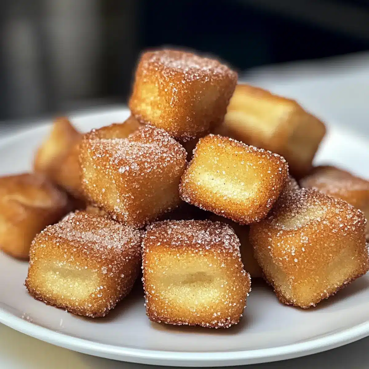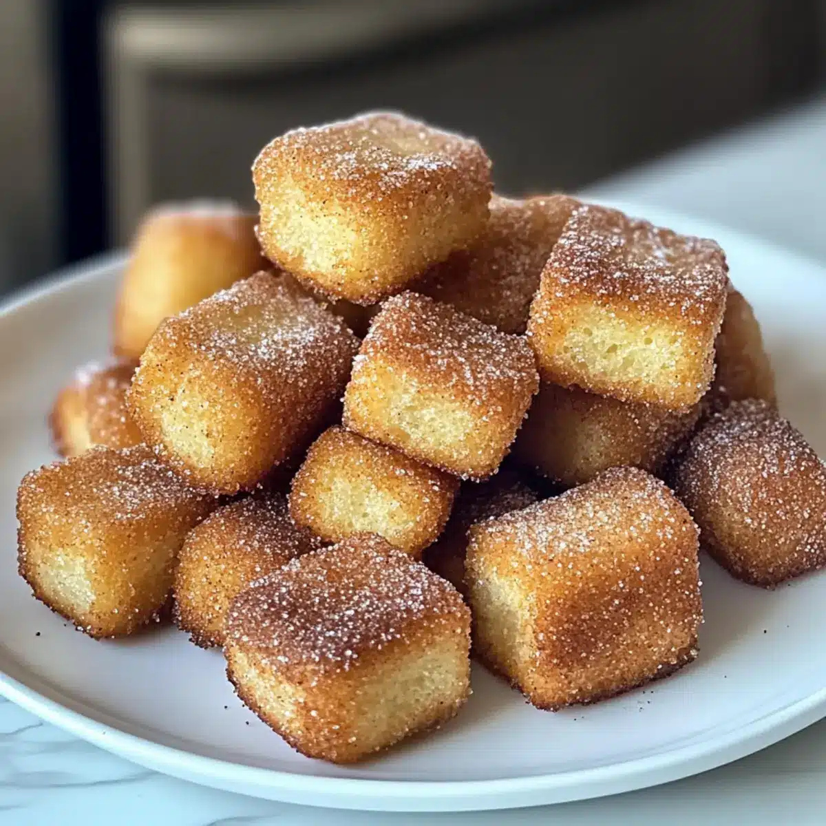 Serviere die gesunden Heißluftfritteuse Churro Bissen sofort, um die beste Textur zu genießen. Sie sind perfekt für gesellige Abende oder als schneller Snack.