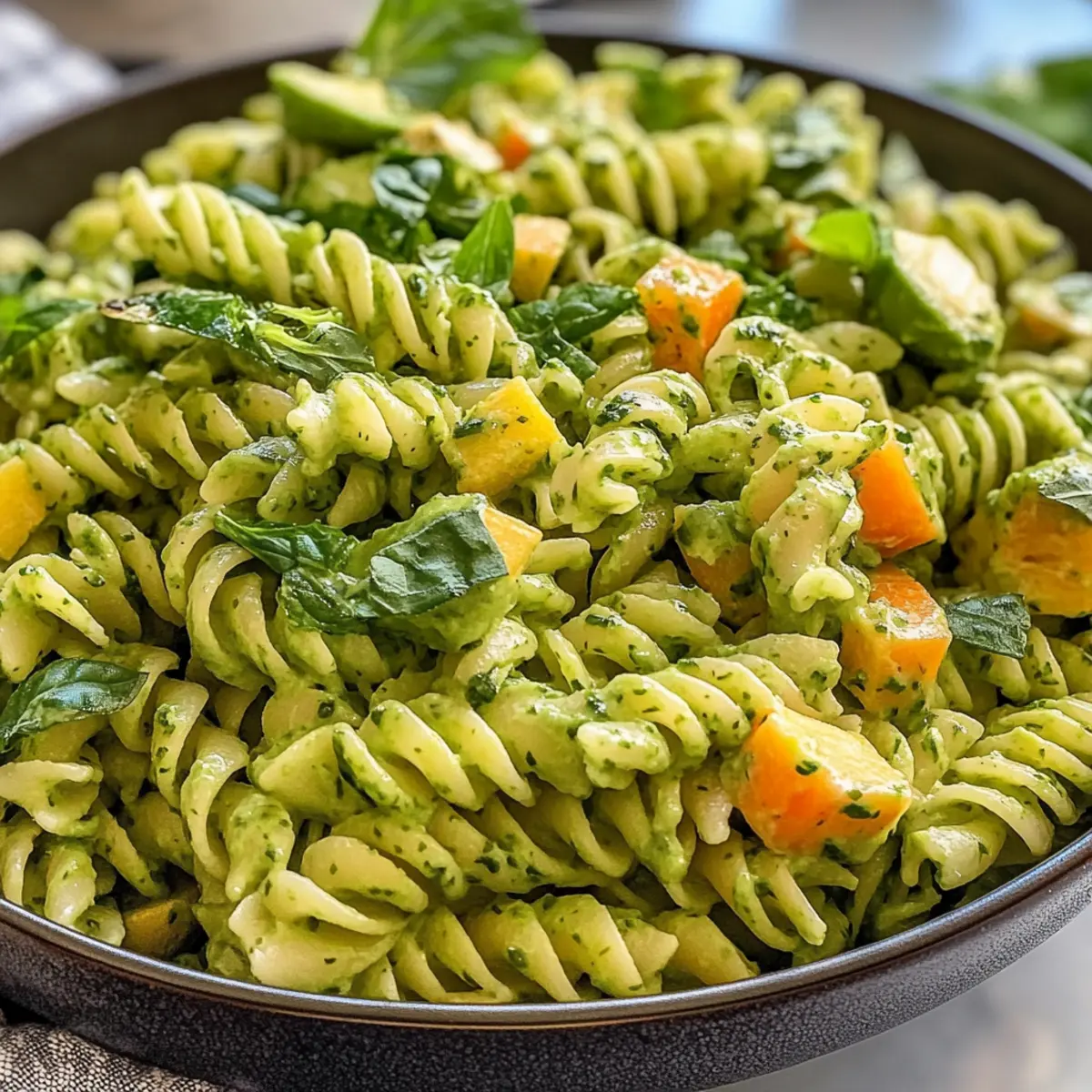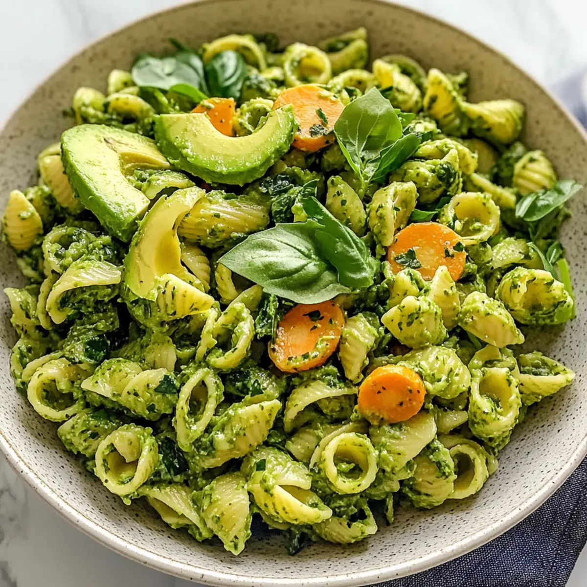 Proteinreiche Pasta: Für einen zusätzlichen Proteinschub kannst du Linsen- oder Kichererbsenpasta verwenden. Dadurch wird der Grüne Göttin Pasta Salat noch nahrhafter.