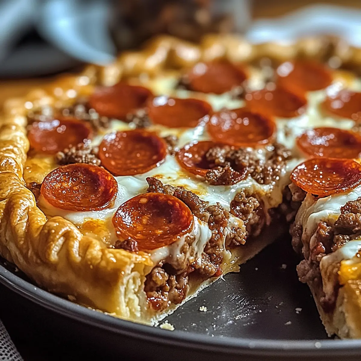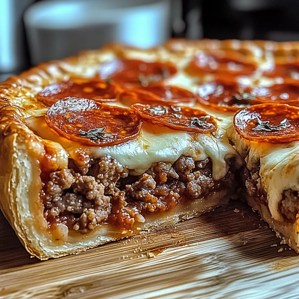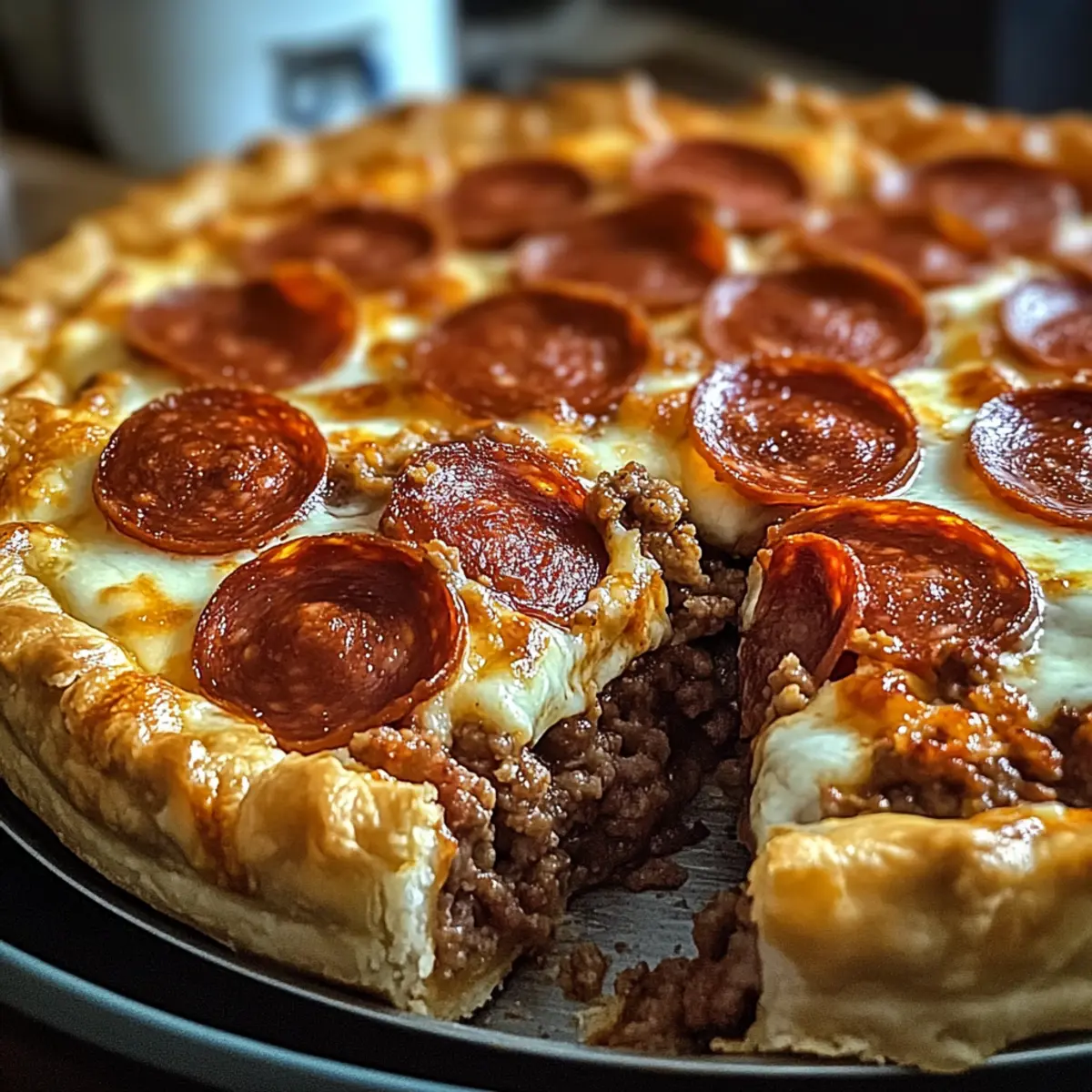 Dieser Hamburger Wurst & Peperoni Kuchen ist perfekt für die Vorbereitung im Voraus! Sie können die Füllung, die aus Rinderhackfleisch, Wurst und Gewürzen besteht, bis zu 3 Tage im Voraus zubereiten; kochen Sie das Fleisch und kühlen Sie es in einem luftdichten Behälter. Auch die Schichtung des Kuchens kann bereits 24 Stunden im Voraus erfolgen – einfach alles in den vorgebackenen Teig schichten und im Kühlschrank lagern. Wenn es Zeit zum Backen ist, heizen Sie den Ofen vor und backen Sie den Kuchen einfach dort für die angegebenen 25–30 Minuten, bis der Käse sprudelnd ist. Um die Qualität beizubehalten, vermeiden Sie es, die Füllung zu überladen, und genießen Sie einen köstlichen, zeitsparenden Abend!