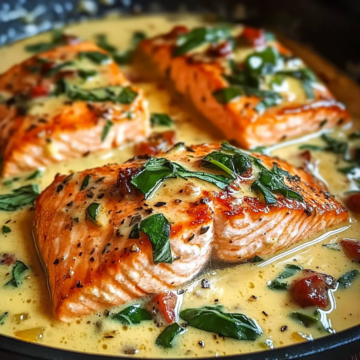 Gemüsige Bereicherung: Ergänzen Sie die Sauce mit frischem Spinat oder gedünstetem Brokkoli für eine gesunde, knackige Textur, die sich wunderbar mit dem Lachs kombiniert.