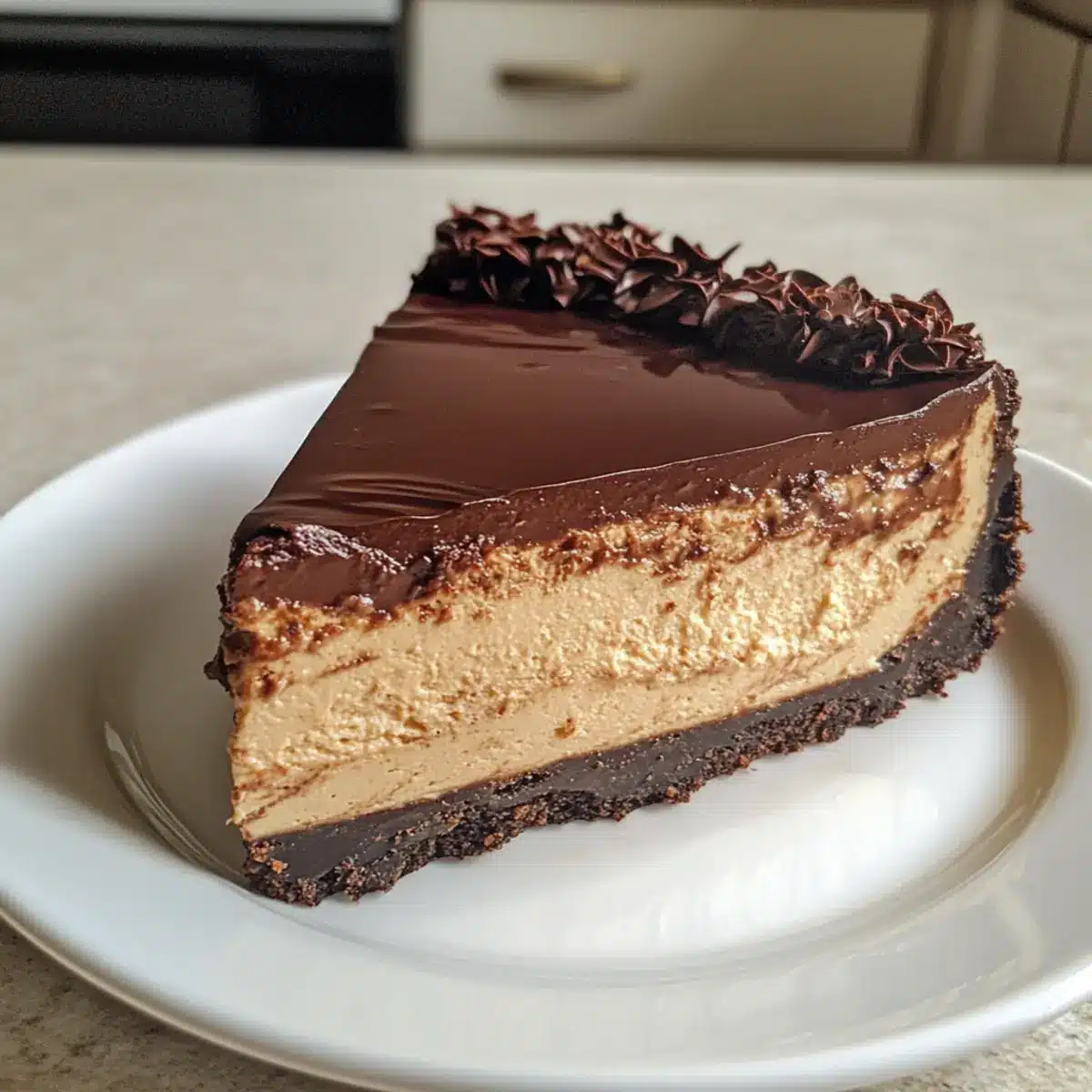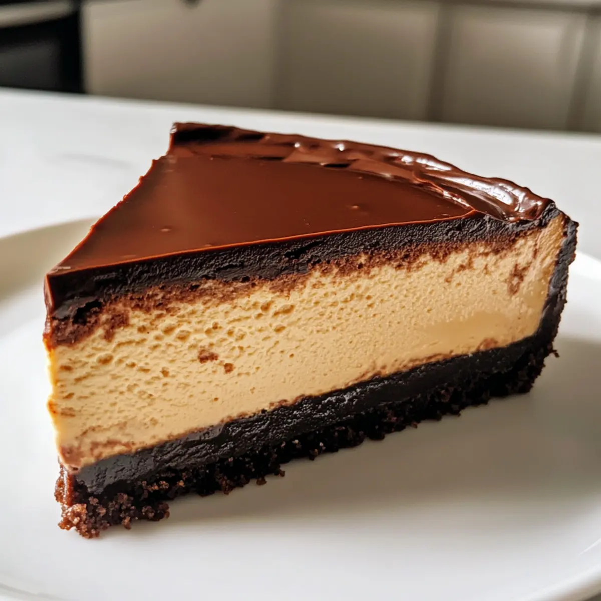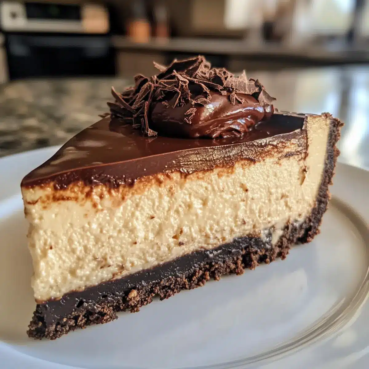 Perfekte Konsistenz: Mit der schokoladigen Ganache erhält der Käsekuchen eine glatte, glänzende Oberfläche und eine unwiderstehliche Textur. Du wirst ihn lieben!