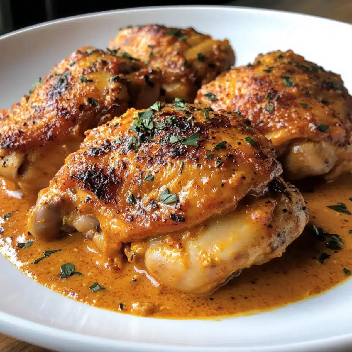 Erhitzen Sie Avocadoöl in einer großen Pfanne bei mittlerer bis hoher Hitze. Fügen Sie die gewürzten Hähnchenoberschenkel hinzu und braten Sie sie für 3–4 Minuten pro Seite, bis sie goldbraun sind. Achten Sie darauf, dass sich eine schöne Kruste bildet; das gibt dem Gericht zusätzlichen Geschmack. Nehmen Sie das Hähnchen anschließend aus der Pfanne und stellen Sie es beiseite.
