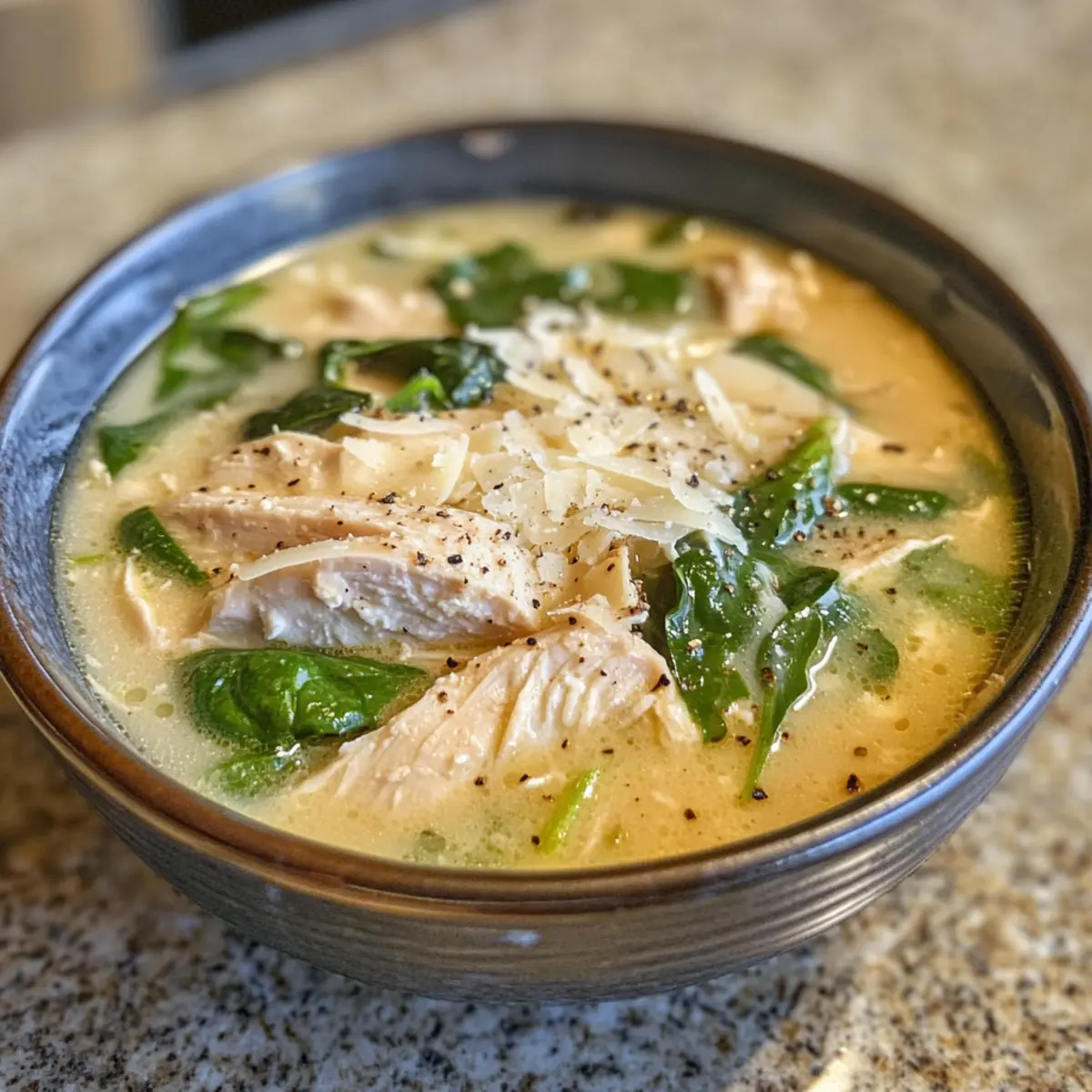 Falls gewünscht, füge frischen Spinat oder Grünkohl hinzu und rühre, bis sie zusammenfallen. Probier die Knoblauch Parmesan Hähnchensuppe und passe die Würzung mit zusätzlichem Salz und Pfeffer an, je nach Geschmack. Serviere die Suppe heiß und garniere sie mit dem restlichen Parmesan für einen köstlichen Abschluss.