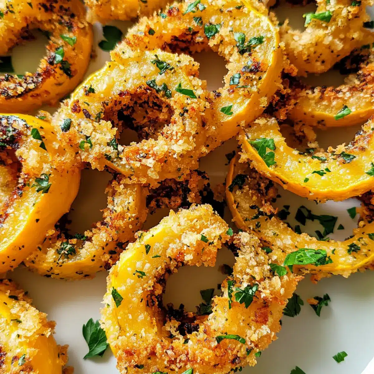 Die ersten frischen Herbsttage bringen eine besondere Magie mit sich, und nichts spricht mehr für diese Jahreszeit als der Knoblauch- und Kräuter-gemahlene Delicata-Kürbis. Diese köstliche Beilage vereint die zarte Süße des Kürbisses mit einer knusprigen, aromatischen Panade, die jeden Bissen zum Genuss macht. Mit nur sieben einfachen Zutaten ist dieses Rezept nicht nur schnell zuzubereiten, sondern auch perfekt für gesellige Abende oder entspannte Familienessen. Ob als glutenfreie Option oder unkomplizierte vegane Beilage, dieses Gericht wird garantiert zum Star auf deinem Tisch! Bist du bereit, deinem nächsten Essen eine innovative Note zu verleihen? Lass uns gemeinsam in die Welt des geschmackvollen Kürbis eintauchen!