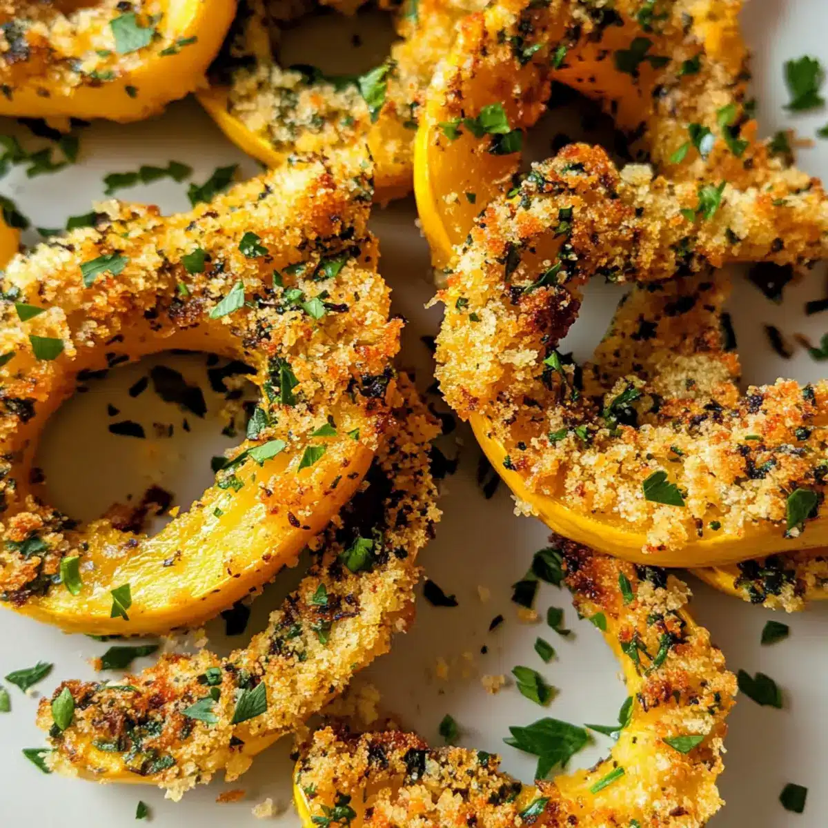 Frisch servieren: Um die beste Knusprigkeit zu genießen, serviere den Knoblauch- und Kräuter-gemahlenen Delicata-Kürbis sofort nach dem Backen – so bleibt er perfekt knusprig und lecker.