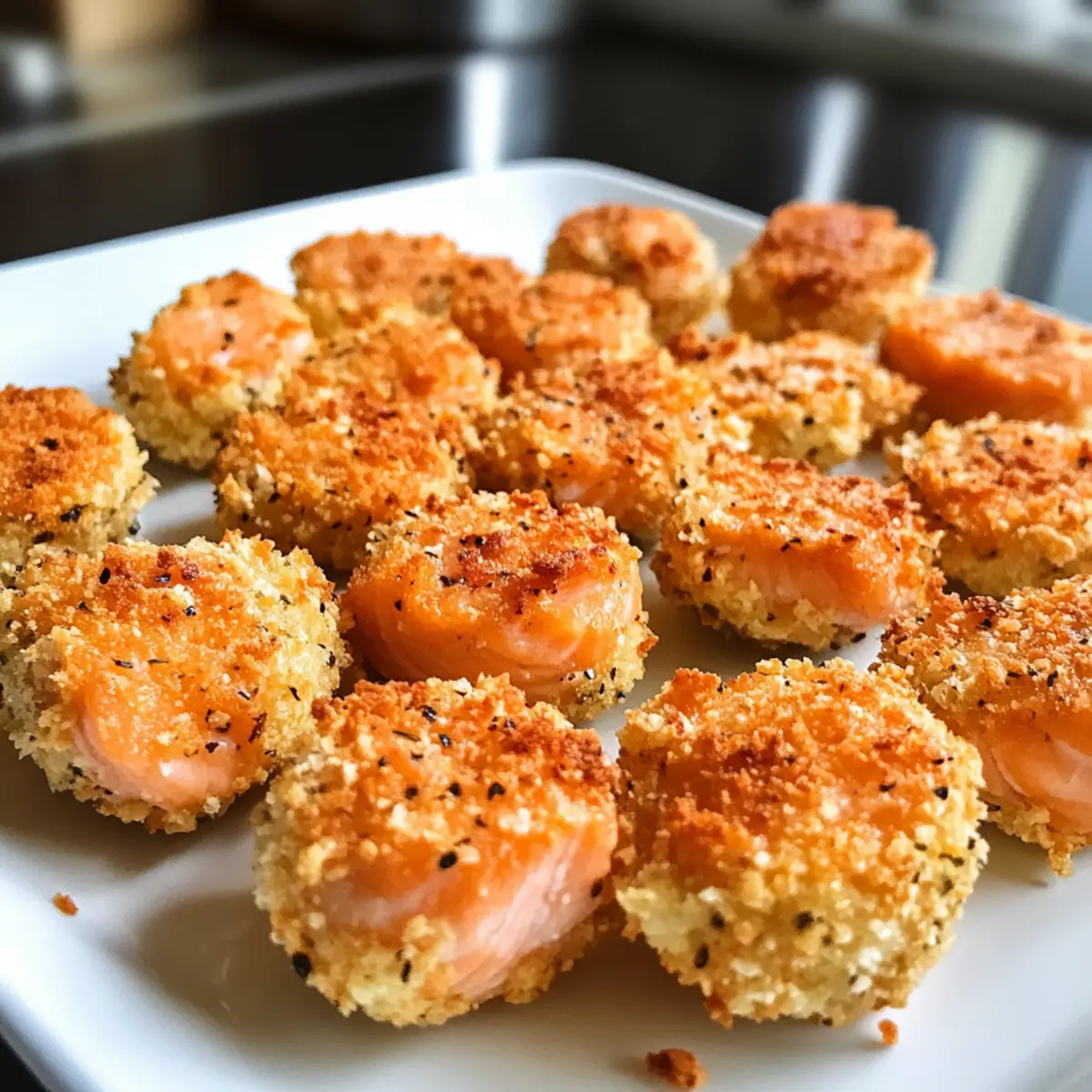 Frisch genießen: Servieren Sie die knusprigen Lachs Bissen direkt nach dem Kochen für den besten Geschmack und die ideale Textur.