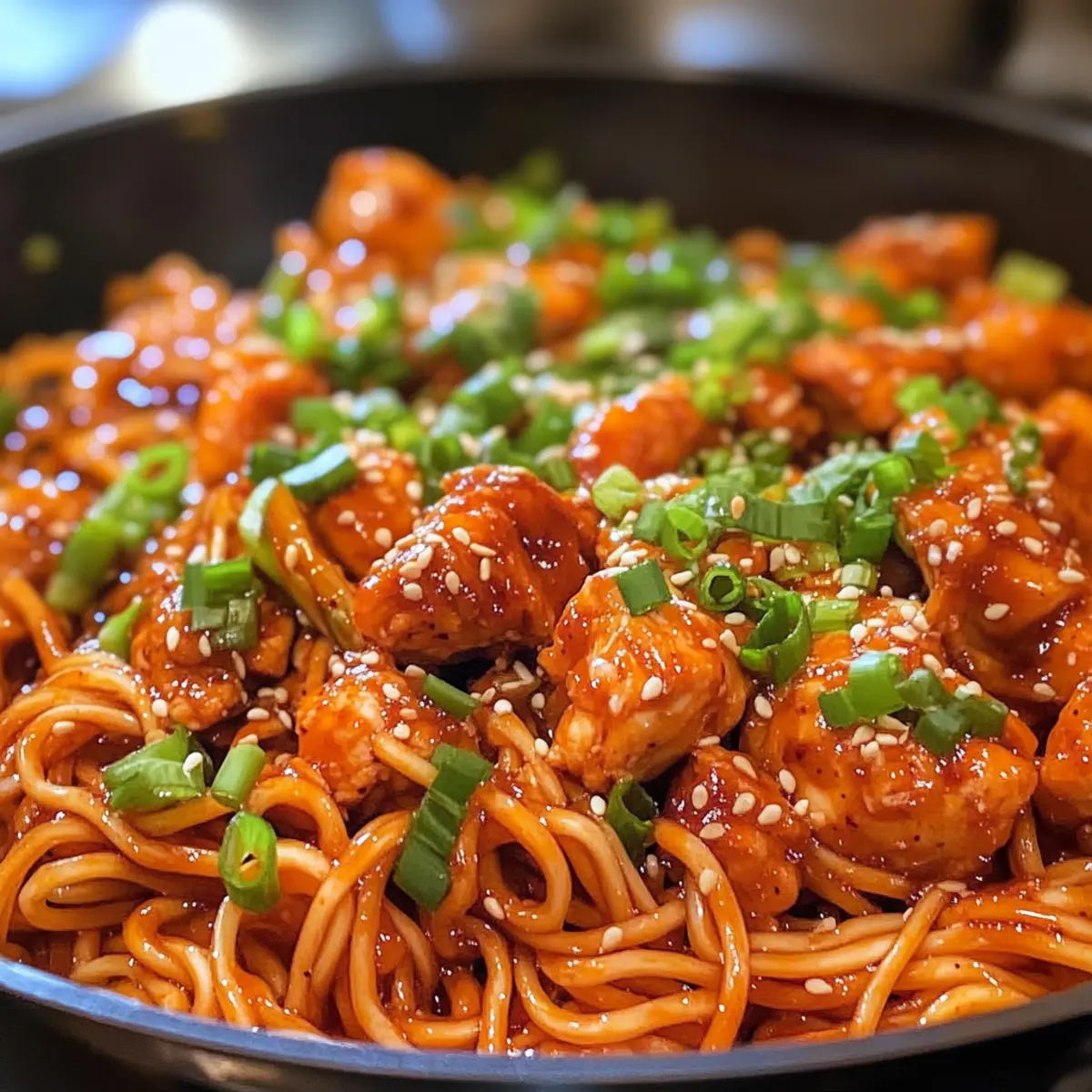 Koreanische scharfe Hähnchen-Nudeln für Zuhause