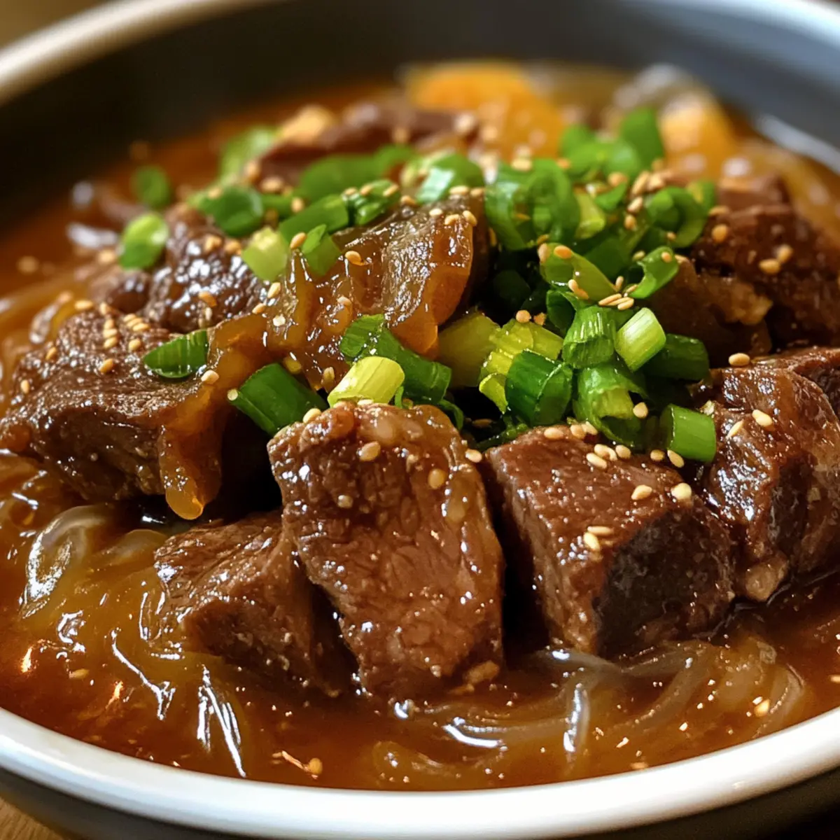 Während ich durch die bunten Straßen von Seoul schlenderte, begegnete mir der verlockende Duft von frisch zubereitetem Eintopf, der mich sofort an ein behagliches Zuhause erinnerte. Heute möchte ich euch mein Rezept für den köstlichen Koreanischen Rindfleisch Bulgogi Eintopf vorstellen, der nicht nur sättigend, sondern auch unglaublich schnell zubereitet ist. In weniger als 30 Minuten verwandelt sich übrig gebliebenes Bulgogi in ein aromatisches Gericht, gefüllt mit zarten Fleischstücken und chewy Glasnudeln in einer herzhaften Brühe. Diese Wohlfühlmahlzeit ist perfekt für kühle Tage und bringt die Aromen Koreas direkt in eure Küche. Seid ihr bereit, eure Liebsten mit einem warmen Eintopf zu verwöhnen?