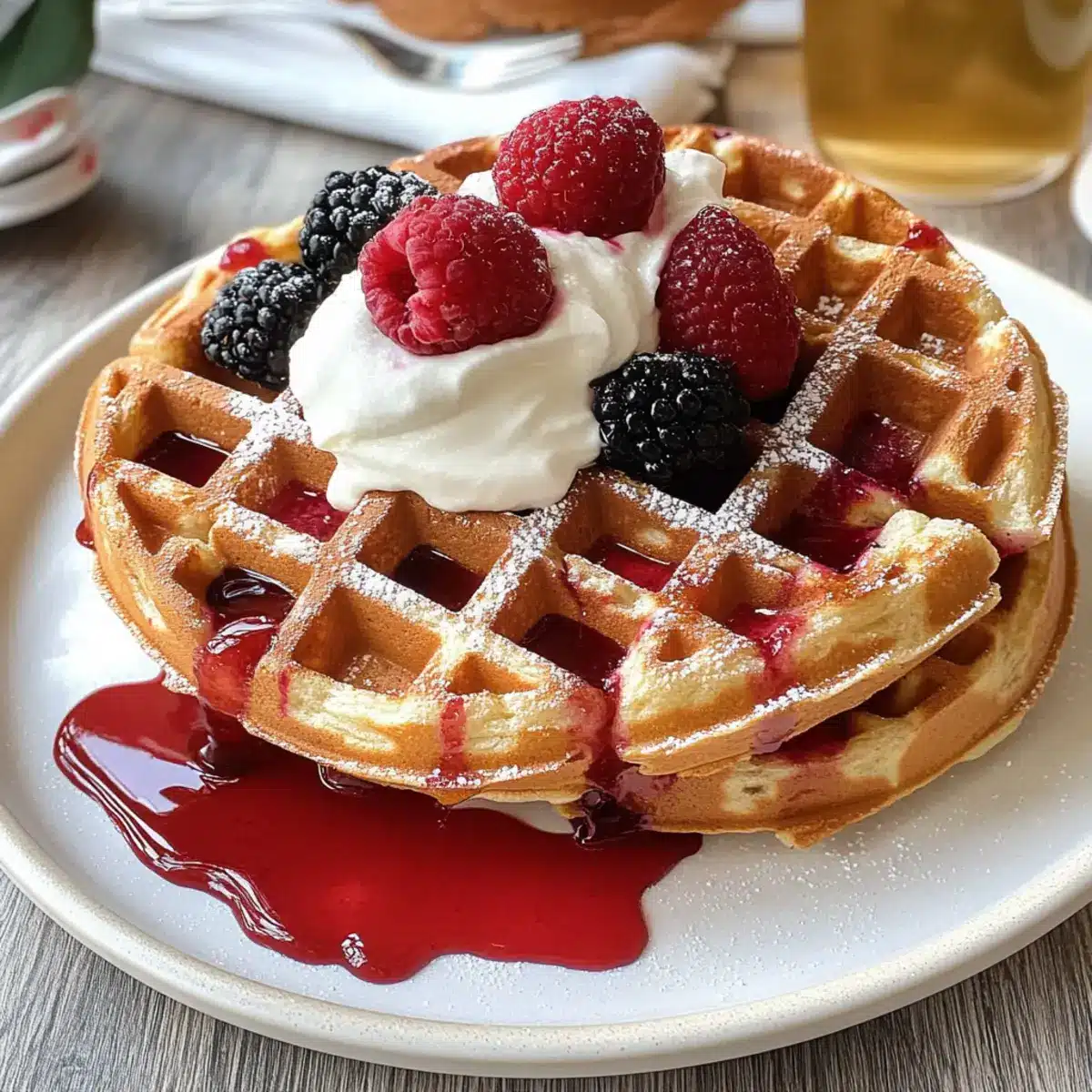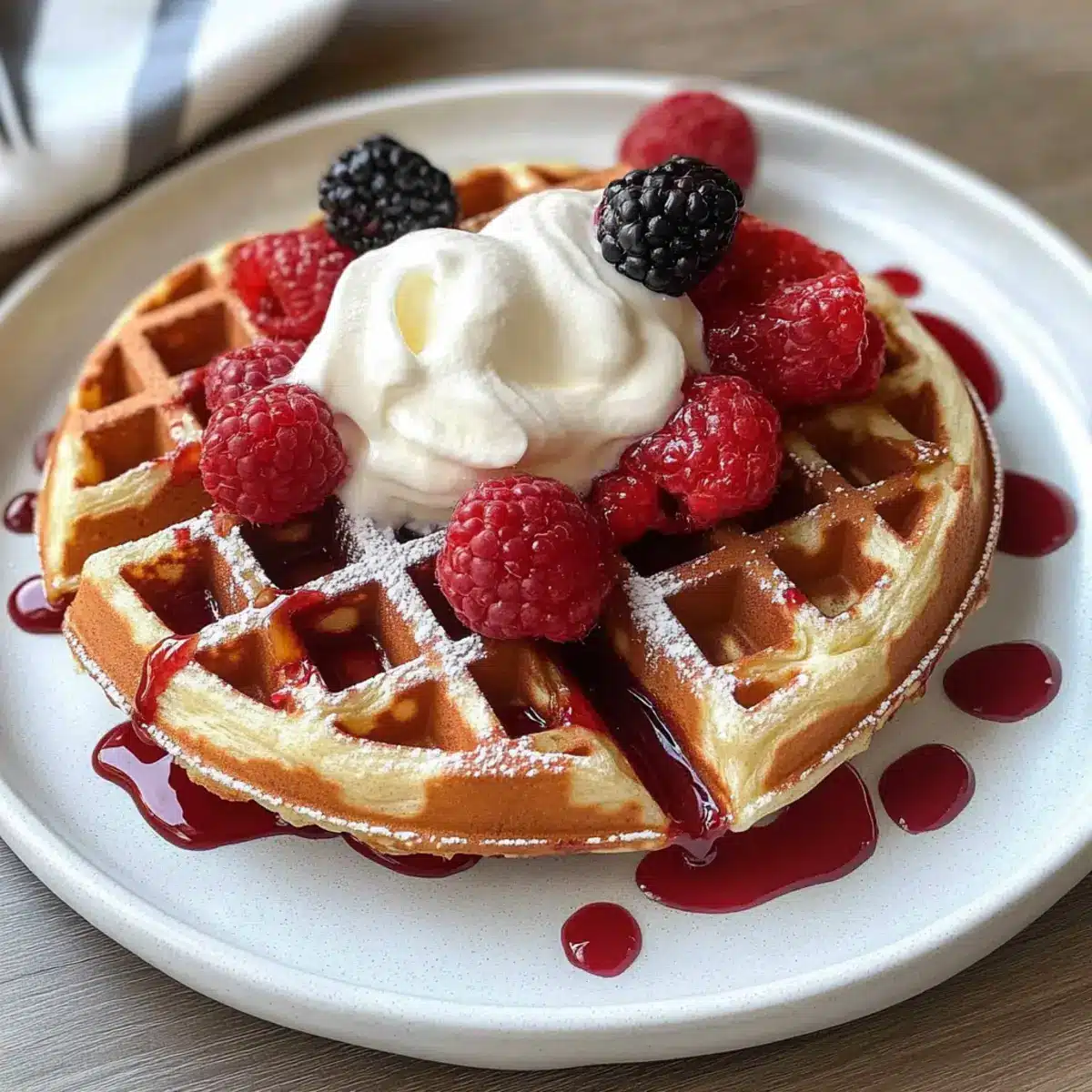 - Frische Beeren – bringen eine fruchtige Frische, die perfekt zu den süßen Waffeln passt.